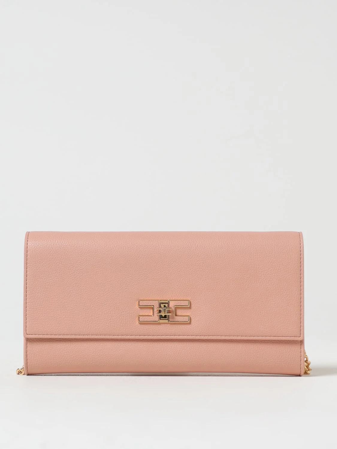 DESCRIPTION - Logo: Metallic - Model: Hand - Closure: With metal interlocking mechanism - Shape: Rectangular - Shoulder strap: Metal mesh, With shoulder rest - Materials: Smooth synthetic leather - Pattern: Monogram DETAILS AND CARE Composition 100 AF SIZE AND FIT Sizes Width : 27 cm Height: 14 cm Depth: 4 cm Designer code: BS32A 181 Giglio Code: 426392 Designer: Elisabetta Franchi Collection: Elisabetta Franchi Woman Category: Bags Elisabetta Franchi