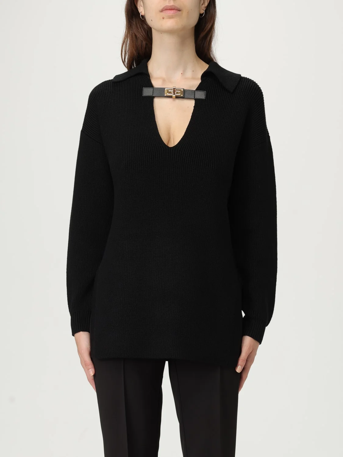 DESCRIPTION - Style: Casual - Logo: Monogram - Model: Crewneck - Neckline: V neckline - Shoulders: Relaxed - Sleeves: Long - Bottom: With straight hemline - Materials: Wool blend - Pattern: Plain-colored DETAILS AND CARE Composition 50% wool, 50%acrylic SIZE AND FIT Sizes not available Size and fit Relaxed fit Designer code: MK06S 110 Giglio Code: H24762 Designer: Elisabetta Franchi Collection: Elisabetta Franchi Woman Category: Clothing Elisabetta Franchi