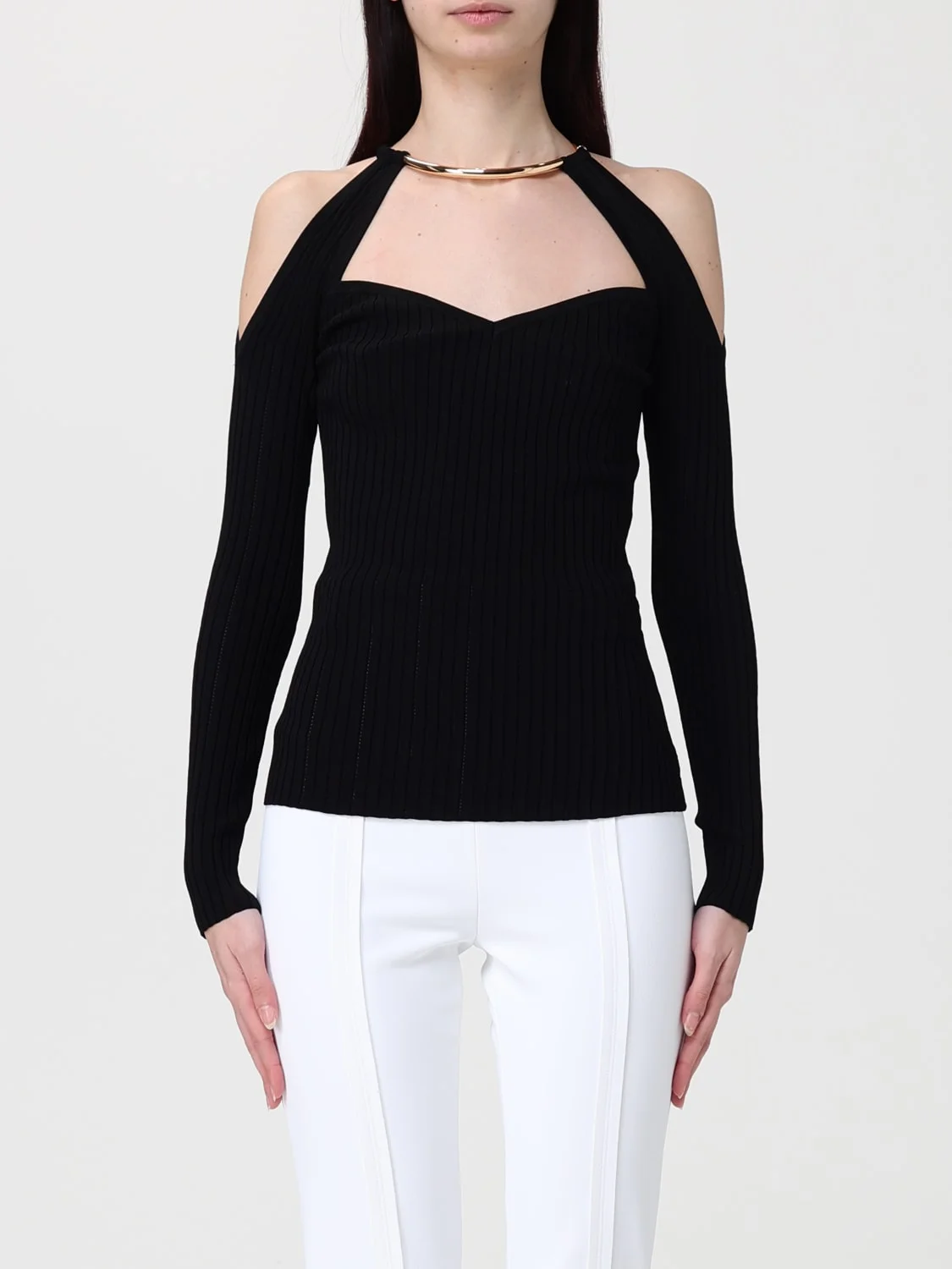 chain-detail ribbed-knit blouse