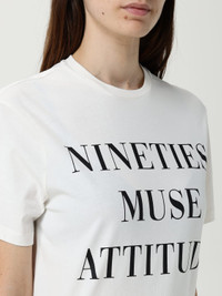 DESCRIPTION - Style: Contemporary - Logo: Back - Model: Crewneck - Neckline: Crewneck - Shoulders: Regular - Sleeves: Short - Bottom: With straight hemline - Materials: Cotton - Pattern: Slogan DETAILS AND CARE Composition 100%CO Wash and Care Machine wash SIZE AND FIT Sizes not available Size and fit Slim fit Designer code: MA65D 270 Giglio Code: H26691 Designer: Elisabetta Franchi Collection: Elisabetta Franchi Woman Category: Clothing Elisabetta Franchi