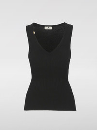 DESCRIPTION - Style: Basic, Casual - Neckline: U neckline - Shoulders: Regular - Bottom: With straight hemline - Sleeves: Off-the-shoulder - Materials: Stretch viscose - Pattern: Plain-colored DETAILS AND CARE Composition 83% Viscose 17% Polyamide SIZE AND FIT Sizes not available Size and fit Slim fit Designer code: TK35T 110 Giglio Code: G67649 Designer: Elisabetta Franchi Collection: Elisabetta Franchi Woman Category: Clothing Elisabetta Franchi