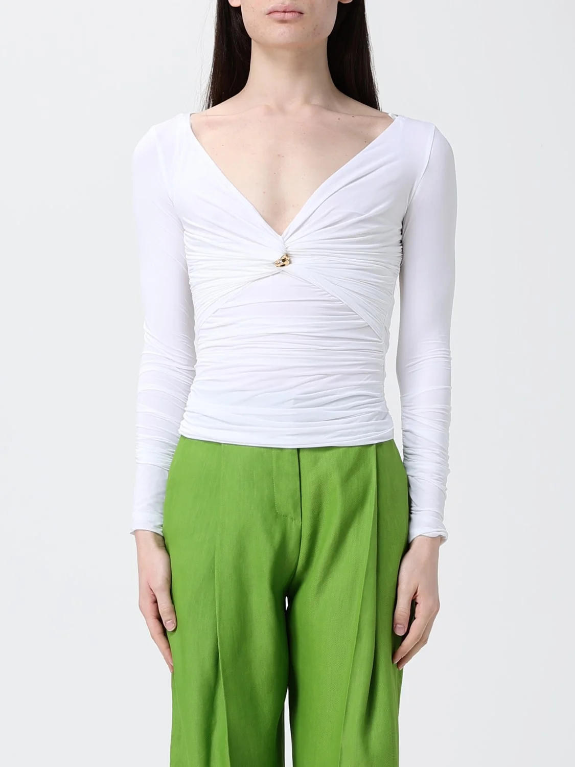 DESCRIPTION - Style: Contemporary - Occasion: Ceremony and cocktail, Evening and party - Logo: Metallic - Model: Draped - Neckline: V neckline - Shoulders: Regular - Bottom: With straight hemline - Sleeves: Long sleeve tops - Materials: Viscose - Pattern: Plain-colored DETAILS AND CARE Composition 90%viscose, 10%elastane SIZE AND FIT Sizes not available Size and fit Slim fit Designer code: MD02962E2 360 Giglio Code: I11139 Designer: Elisabetta Franchi Collection: Clothing Elisabetta Franchi Category: Clothing > Top