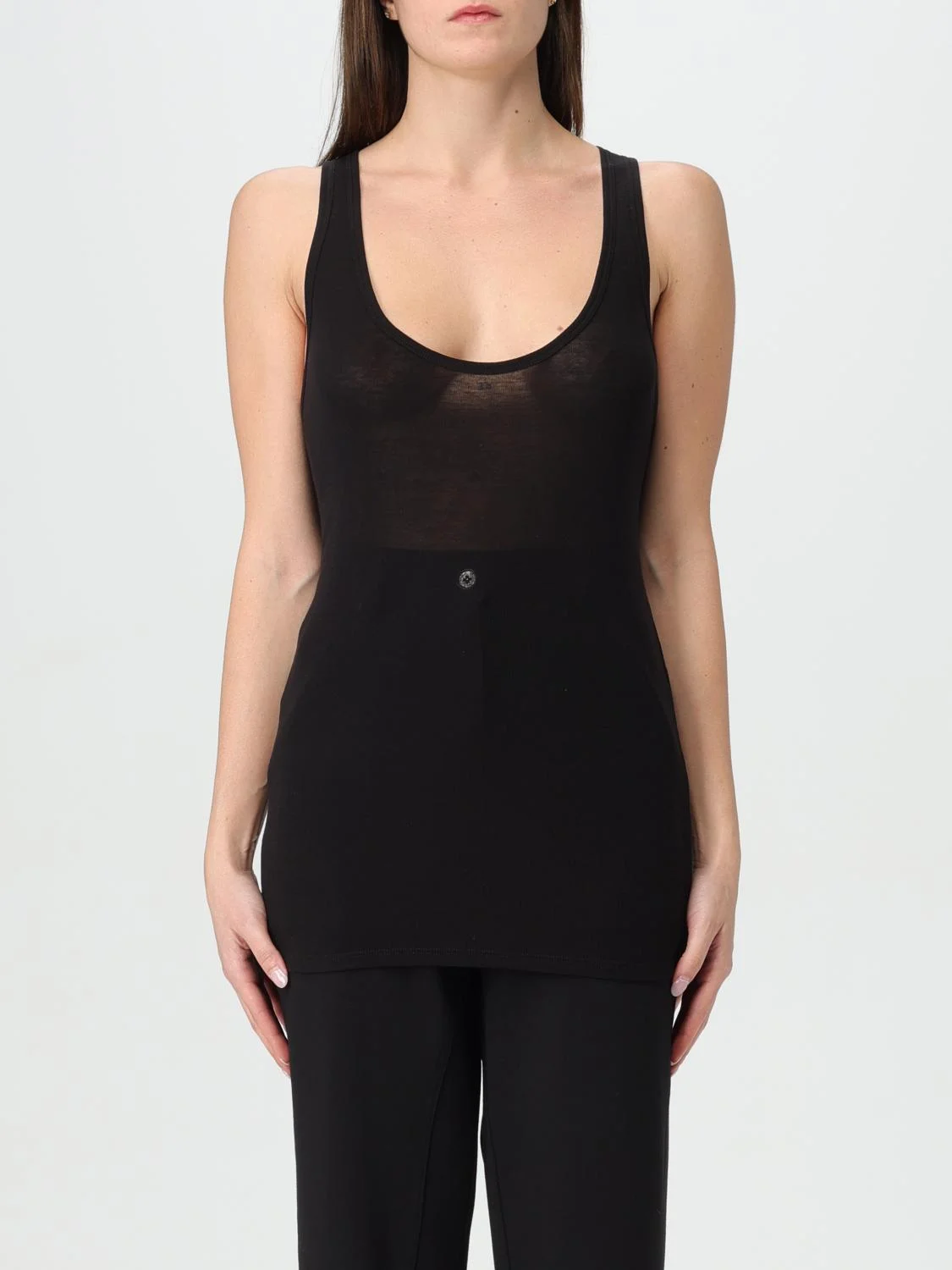 DESCRIPTION - Style: Basic - Logo: Back - Neckline: U neckline - Sleeves: Sleeveless - Materials: Jersey - Pattern: Plain-colored DETAILS AND CARE Composition not available SIZE AND FIT Sizes not available Size and fit Slim fit Designer code: CN08B 110 Giglio Code: G32464 Designer: Elisabetta Franchi Collection: Elisabetta Franchi Woman Category: Clothing Elisabetta Franchi