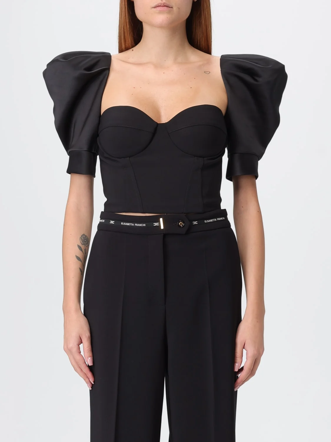 DESCRIPTION - Style: Elegant - Neckline: Sweetheart - Shoulders: Curled - Closure: Back closure with zip - Bottom: With straight hemline - Model: Corset - Sleeves: Short sleeve tops - Materials: Polyester - Pattern: Plain-colored DETAILS AND CARE Composition 95% Poliestere 5% Elastane SIZE AND FIT Sizes not available Size and fit Slim fit Designer code: TO026 110 Giglio Code: H24191 Designer: Elisabetta Franchi Collection: Elisabetta Franchi Woman Category: Clothing Elisabetta Franchi