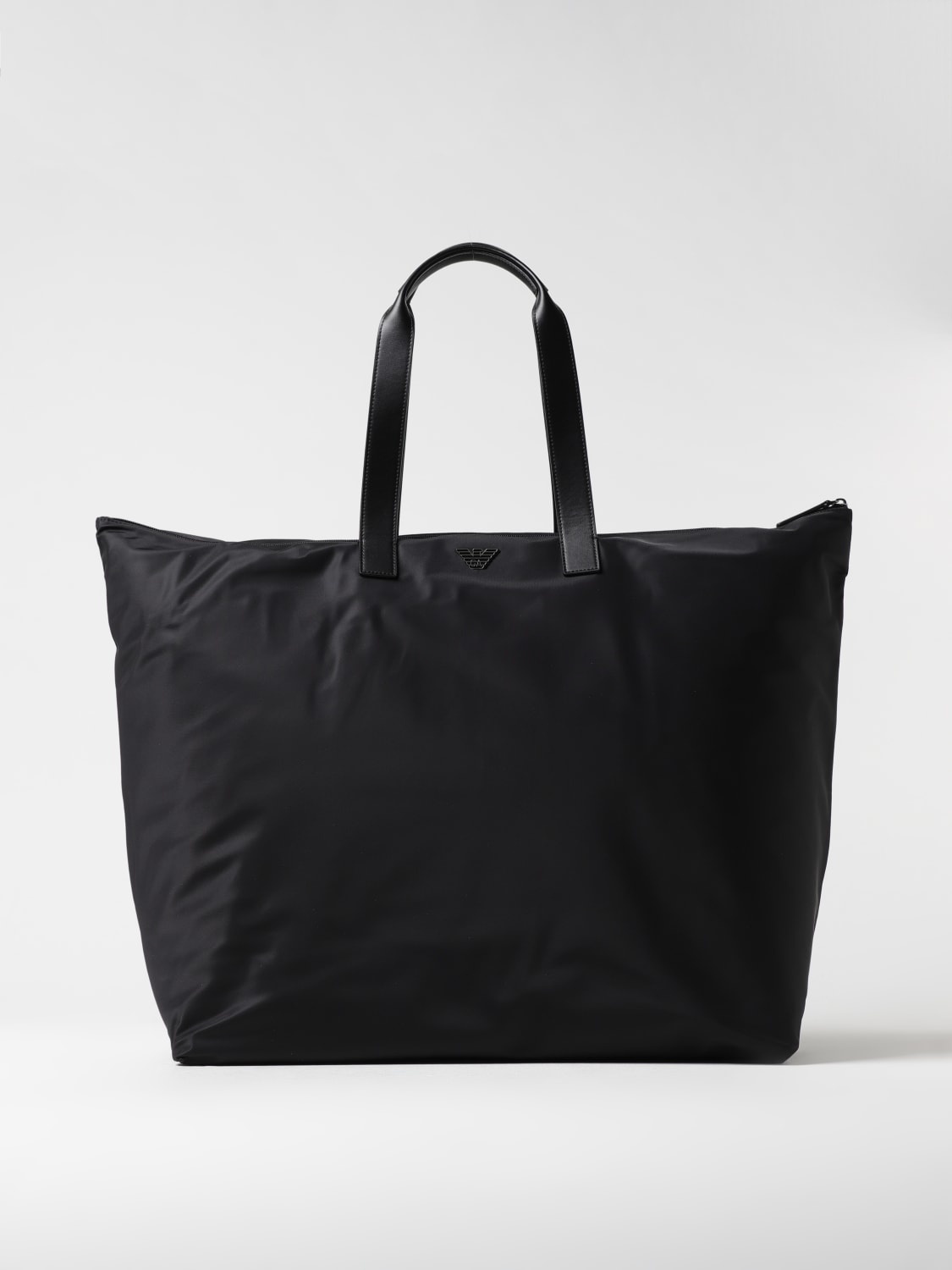 DESCRIPTION - Style: Sporty - Logo: Armani Eagle - Model: Hand, Tote - Closure: With zip - Shape: Flared - Handle: Double, Top - Materials: Nylon - Pattern: Plain-colored DETAILS AND CARE Composition FABRIC : POLYAMIDE 100% - LINING : POLYE SIZE AND FIT Sizes Width : 50 cm Height: 45 cm Depth: 25 cm Handle height: 25 cm Designer code: EM001798AF13454 UC001 Giglio Code: 422403 Designer: Emporio Armani Collection: Emporio Armani Men Category: Bags Emporio Armani
