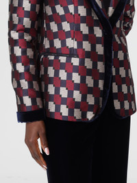 GEOMETRIC JACQUARD BLAZER WITH VELVET DETAILS