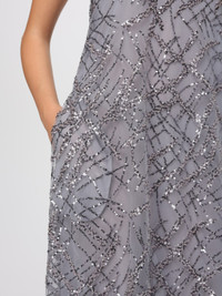 LONG TULLE DRESS WITH ALL-OVER MICRO-SEQUIN AND JET EMBROIDERY
