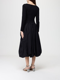 STRETCH MILANO-STITCH DRESS WITH TAFFETA SKIRT