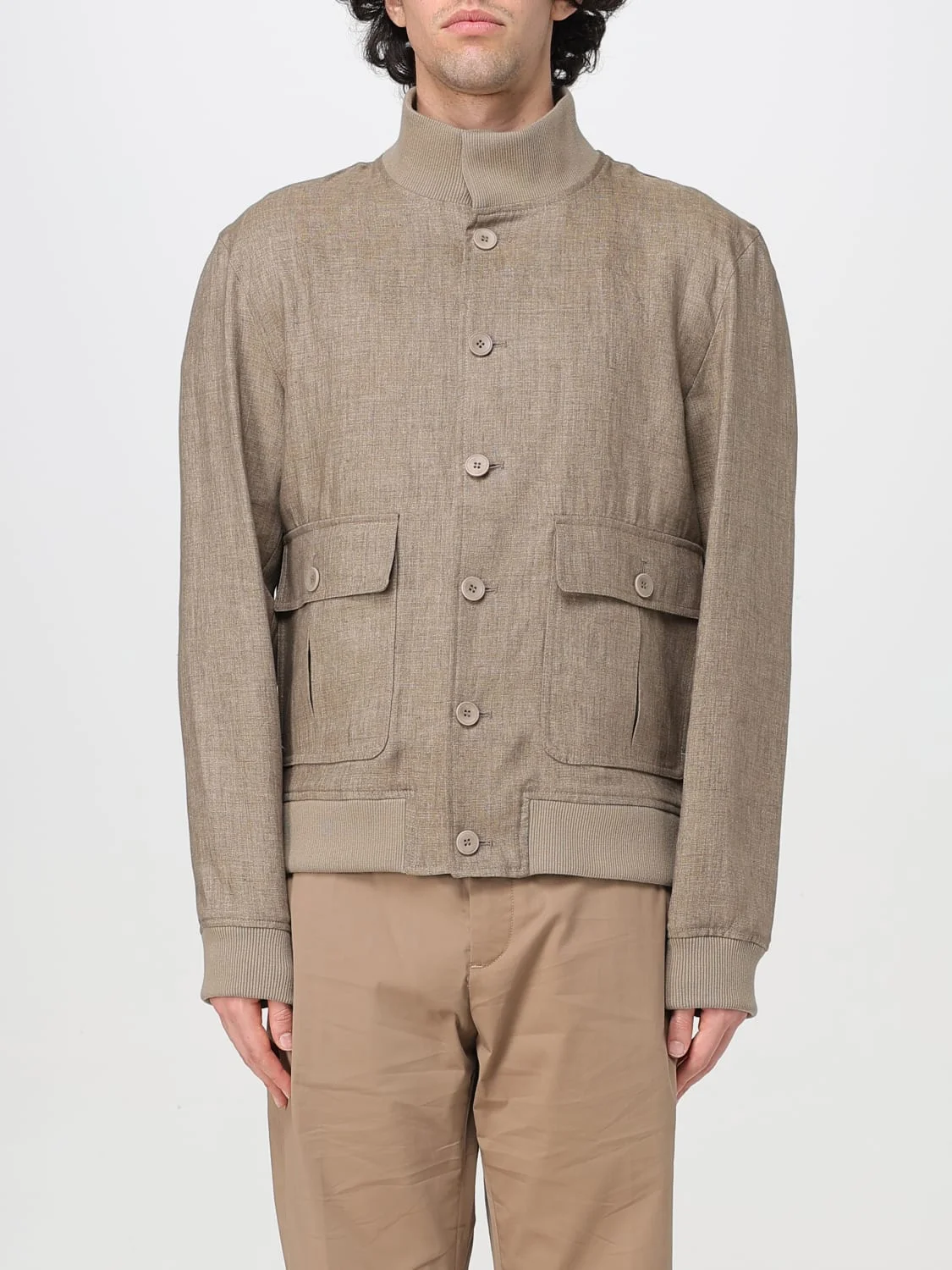 DESCRIPTION - Style: Classic - Neck: High - Shoulders: Relaxed - Sleeves: Long - Closure: With buttons - Pockets: Patch pocket with flap and button - Bottom: Stretch - Length: Short jackets - Materials: Linen - Pattern: Plain-colored DETAILS AND CARE Composition FABRIC : FLAX 100% - RIB DETAILS : COTTO SIZE AND FIT Sizes not available Size and fit Relaxed fit Designer code: EM002158TE14076 O6006 Giglio Code: 422361 Designer: Emporio Armani Collection: Emporio Armani Men Category: Clothing Emporio Armani