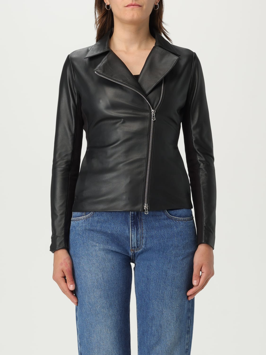 DESCRIPTION - Style: Rock - Shoulders: Regular - Sleeves: Long - Closure: With zip - Bottom: With straight hemline - Neck: Biker - Length: Short jackets - Materials: Leather - Pattern: Plain-colored DETAILS AND CARE Composition LEATHER 100% SIZE AND FIT Sizes not available Size and fit Slim fit Designer code: 0NB10P02P 15999 Giglio Code: G80120 Designer: Emporio Armani Collection: Emporio Armani Woman Category: Clothing Emporio Armani