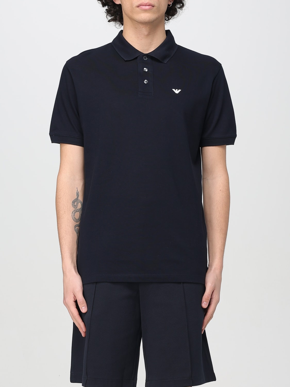 DESCRIPTION - Style: Casual - Logo: Contrasting, Armani Eagle - Neck: Classic - Shoulders: Regular - Sleeves: Short - Closure: With 3-button placket - Bottom: With straight hemline - Materials: Cotton - Pattern: Plain-colored DETAILS AND CARE Composition Cotton 100% SIZE AND FIT Sizes not available Size and fit Regular fit Designer code: 8N1FQ21JTKZ 0920 Giglio Code: G74890 Designer: Emporio Armani Collection: Emporio Armani Men Category: Clothing Emporio Armani