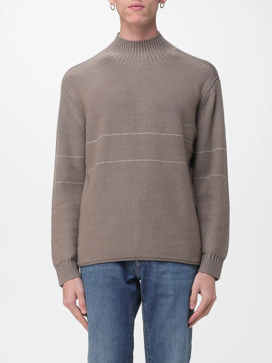 DESCRIPTION - Style: Classic - Neck: High - Shoulders: Relaxed - Sleeves: Long - Bottom: With straight hemline - Materials: Wool blend - Pattern: Plain-colored, Stripes DETAILS AND CARE Composition Wool | 88% WOOL 7% POLYESTER 5% POLYAMIDE SIZE AND FIT Sizes not available Size and fit Relaxed fit Designer code: EM002024AF18103 U6189 Giglio Code: H31961 Designer: Emporio Armani Collection: Emporio Armani Men Category: Clothing Emporio Armani