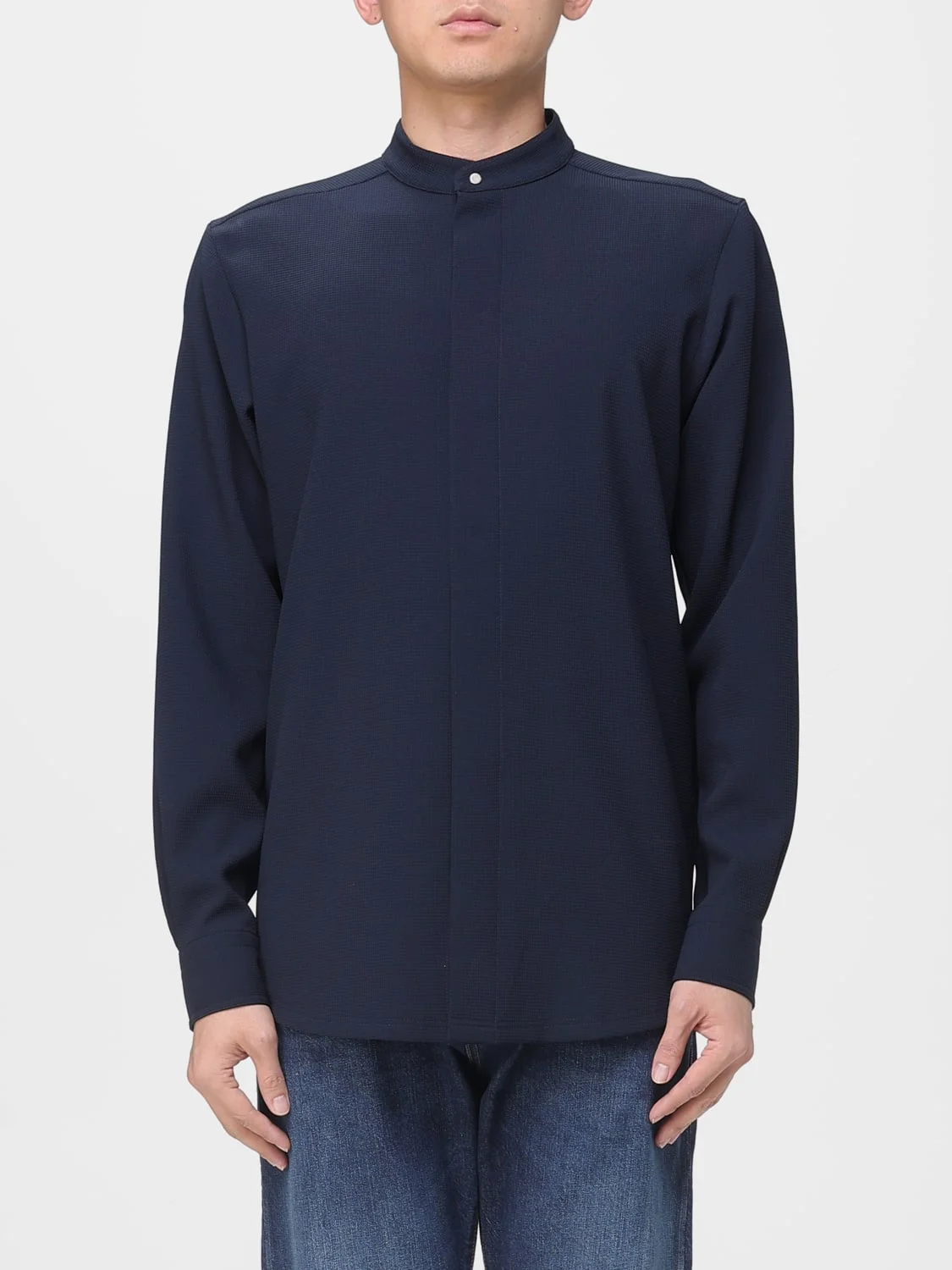 DESCRIPTION - Style: Casual, Minimal - Neck: Mandarin collar - Shoulders: Regular - Closure: Concealed, With buttons - Pockets: Patch pocket - Bottom: With curved hemline - Sleeves: Long sleeve shirts - Materials: Jersey - Pattern: Plain-colored DETAILS AND CARE Composition 100% ELASTOMULTIESTER SIZE AND FIT Sizes not available Size and fit Regular fit Designer code: EM003628TE14101 UB081 Giglio Code: H63877 Designer: Emporio Armani Collection: Emporio Armani Men Category: Clothing Emporio Armani