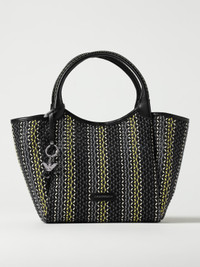 DESCRIPTION - Style: Vintage - Lining: With removable pouch - Model: Hand - Closure: With hook - Shape: Flared - Handle: Double - Details: With logo charm - Logo: With logo - Materials: Polyester - Pattern: Geometric DETAILS AND CARE Composition MAIN FABRIC : POLYESTER 95% COTTON 5% - SIZE AND FIT Sizes Width : 49 cm Height: 43 cm Depth: 18 cm Designer code: EW001009AF12768 FC145 Giglio Code: 422457 Designer: Emporio Armani Collection: Emporio Armani Woman Category: Bags Emporio Armani