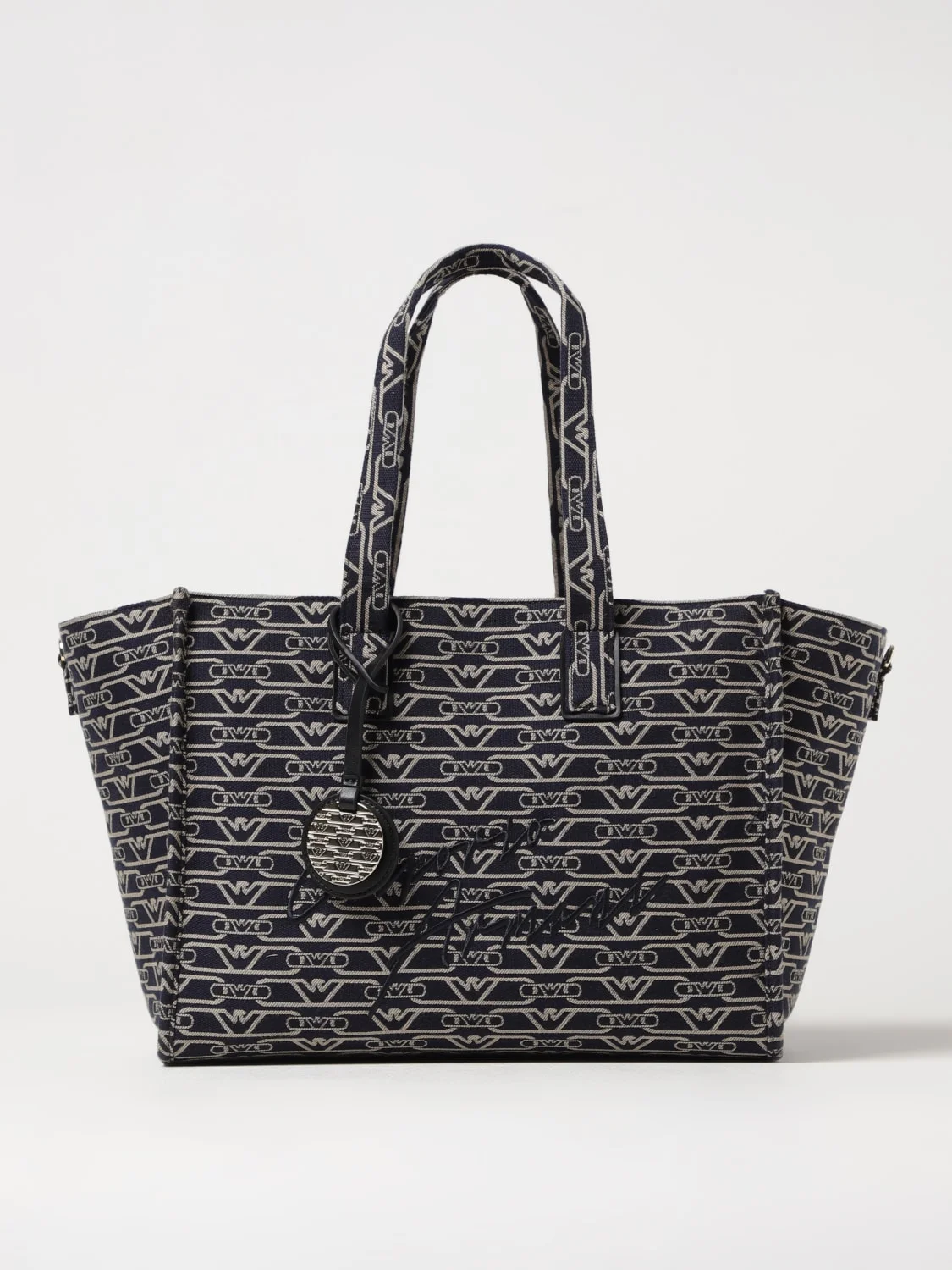 DESCRIPTION - Logo: Armani Eagle - Model: Shoulder - Closure: With zip - Shape: Flared - Handle: Double - Shoulder strap: Adjustable and removable - Lining: Fabric - Details: With logo charm - Materials: Cotton blend - Pattern: Monogram DETAILS AND CARE Composition MAIN FABRIC : COTTON 63% POLYESTER 37% - SIZE AND FIT Sizes Width : 48 cm Height: 26 cm Depth: 19 cm Designer code: EW000370AF12993 FB237 Giglio Code: 422452 Designer: Emporio Armani Collection: Emporio Armani Woman Category: Bags Emporio Armani