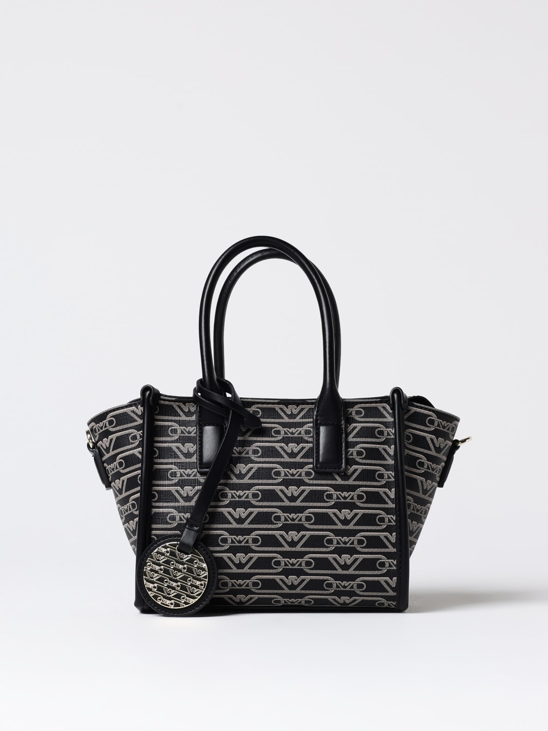 DESCRIPTION - Logo: Armani Eagle - Details: With logo charm - Model: Hand - Closure: With zip - Shape: Rectangular - Handle: Double - Shoulder strap: Adjustable and removable - Materials: Synthetic leather - Pattern: Jacquard, All-over monogram DETAILS AND CARE Composition MAIN FABRIC : POLYESTER 100% - MAIN OUTS SIZE AND FIT Sizes Width : 28,5 cm Height: 15,5 cm Depth: 10,5 cm Designer code: EW000371AF11951 FC033 Giglio Code: 414366 Designer: Emporio Armani Collection: Emporio Armani Woman Category: Bags Emporio Armani