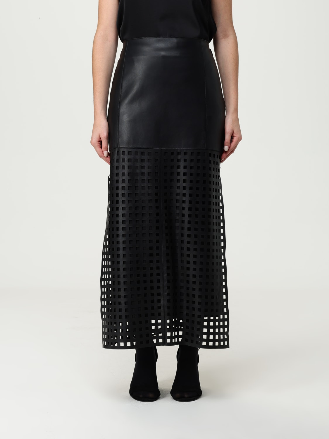 POLYGON CAPSULE COLLECTION MIDI SKIRT IN VEGETABLE-TANNED NAPPA LEATHER WITH LASER-CUT PERFORATIONS