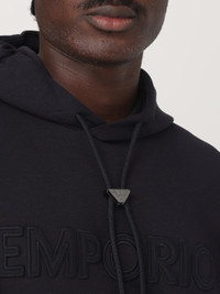 DESCRIPTION - Style: Sporty - Logo: Tone-on-tone - Hood: With drawstrings - Shoulders: Regular - Sleeves: Long - Cuffs: Stretch - Bottom: With straight hemline - Model: With hood - Materials: Cotton blend - Pattern: Logo DETAILS AND CARE Composition 18% PL 6% EA 76% CO SIZE AND FIT Sizes not available Size and fit Regular fit Designer code: EM001121AF10013 UB118 Giglio Code: G72046 Designer: Emporio Armani Collection: Emporio Armani Men Category: Clothing Emporio Armani