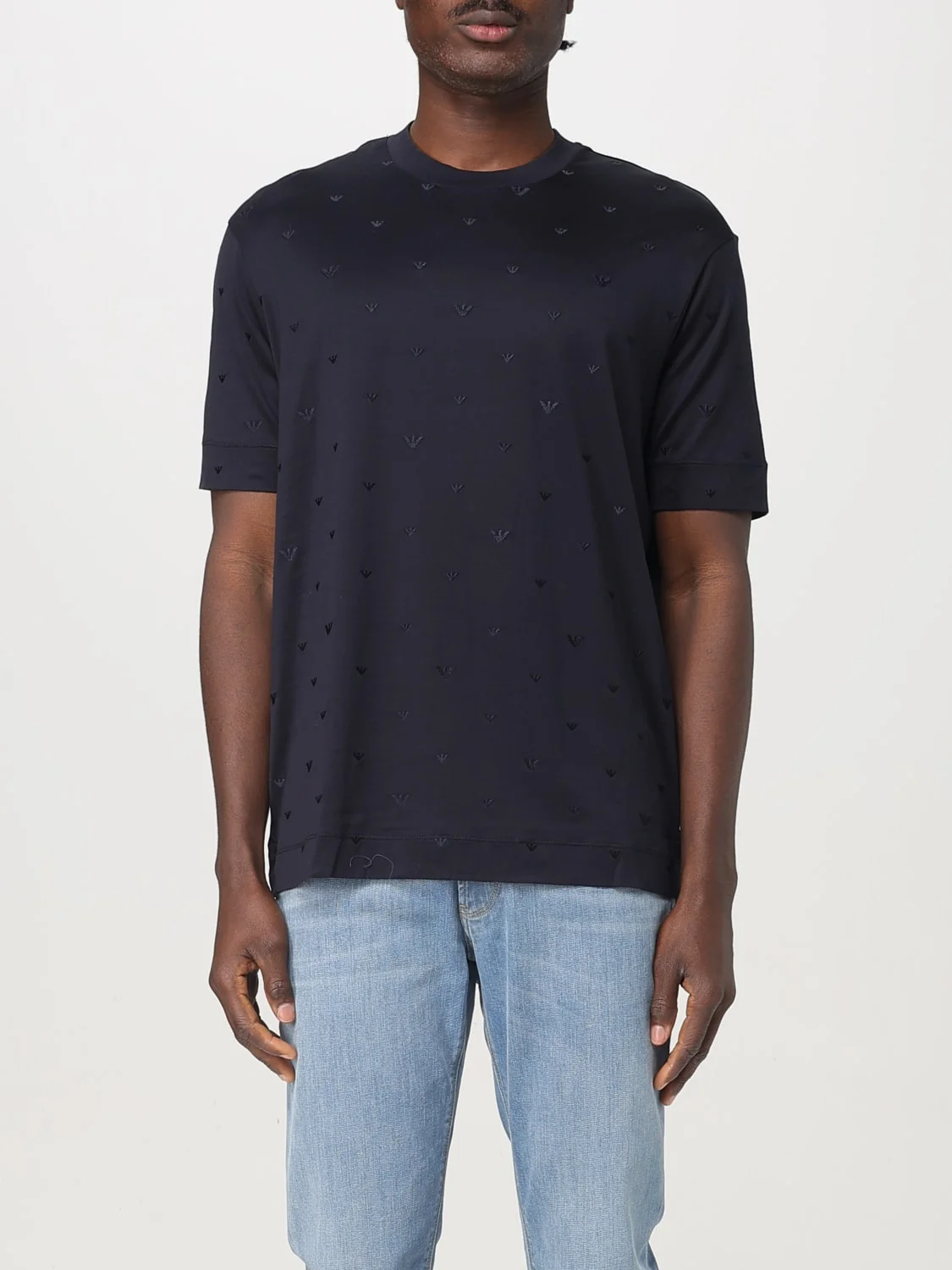 DESCRIPTION - Style: Basic - Logo: Armani Eagle - Model: Crewneck - Neckline: Crewneck - Shoulders: Regular - Sleeves: Short - Bottom: With straight hemline - Materials: Cotton - Pattern: Monogram DETAILS AND CARE Composition FABRIC : LYOCELL 70% COTTON 30% - EMBROI SIZE AND FIT Sizes not available Size and fit Regular fit Designer code: EM001400AF10017 FB234 Giglio Code: 422336 Designer: Emporio Armani Collection: Emporio Armani Men Category: Clothing Emporio Armani