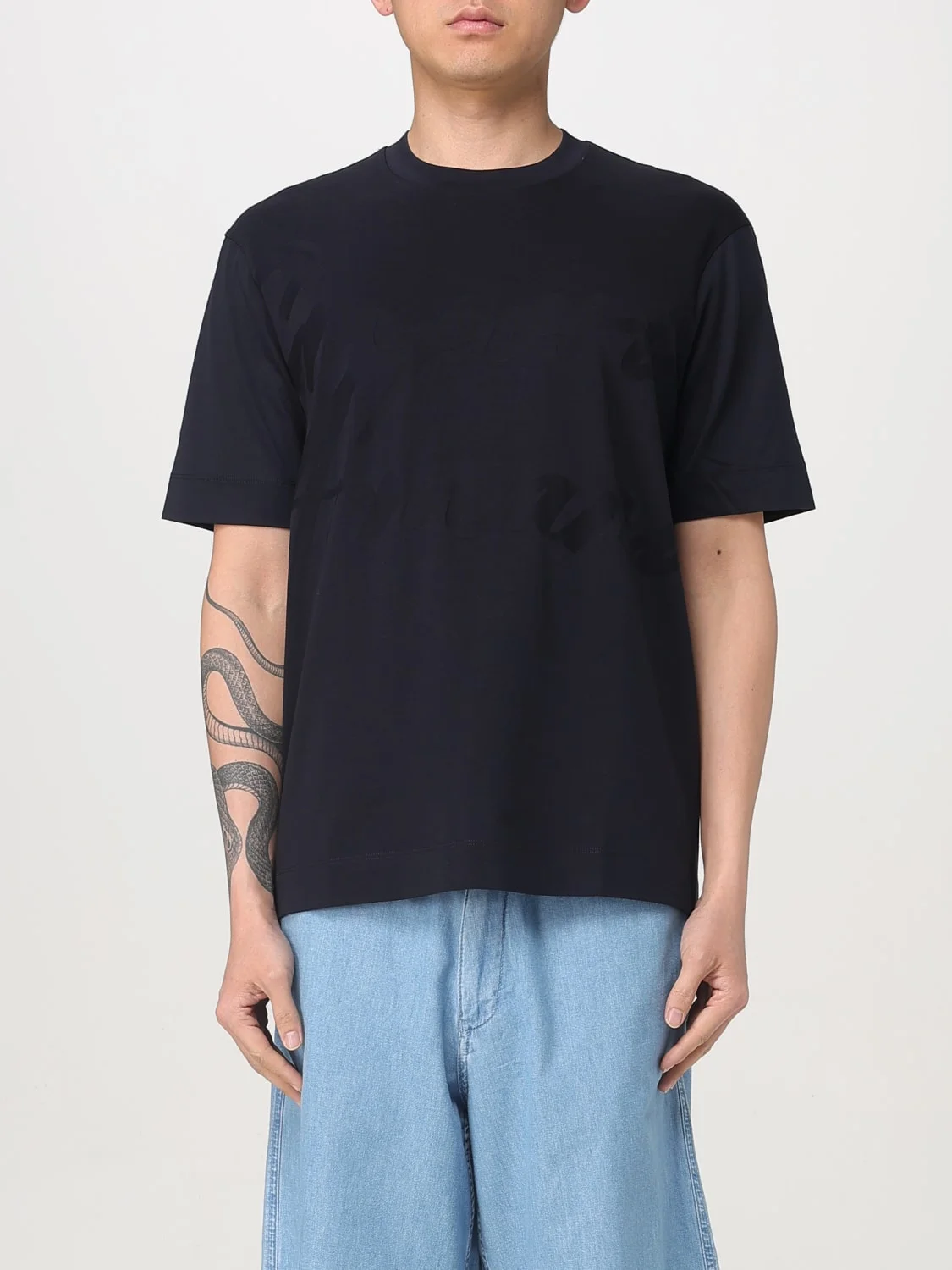 DESCRIPTION - Style: Basic - Model: Crewneck - Logo: Armani Eagle - Neckline: Crewneck - Shoulders: Relaxed - Sleeves: Short - Bottom: With straight hemline - Materials: Cotton - Pattern: Logo DETAILS AND CARE Composition FABRIC : COTTON 100% SIZE AND FIT Sizes not available Size and fit Regular fit Designer code: EM000943AF10762 FB258 Giglio Code: 422343 Designer: Emporio Armani Collection: Emporio Armani Men Category: Clothing Emporio Armani