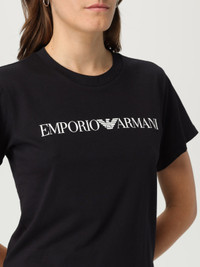DESCRIPTION - Style: Sporty - Logo: Print - Model: Crewneck - Neckline: Crewneck - Shoulders: Regular - Sleeves: Short - Bottom: With straight hemline - Materials: Cotton - Pattern: Logo DETAILS AND CARE Composition Cotton 100% SIZE AND FIT Sizes not available Size and fit Regular fit Designer code: 8N2T9C2J53Z F903 Giglio Code: G68972 Designer: Emporio Armani Collection: Emporio Armani Woman Category: Clothing Emporio Armani