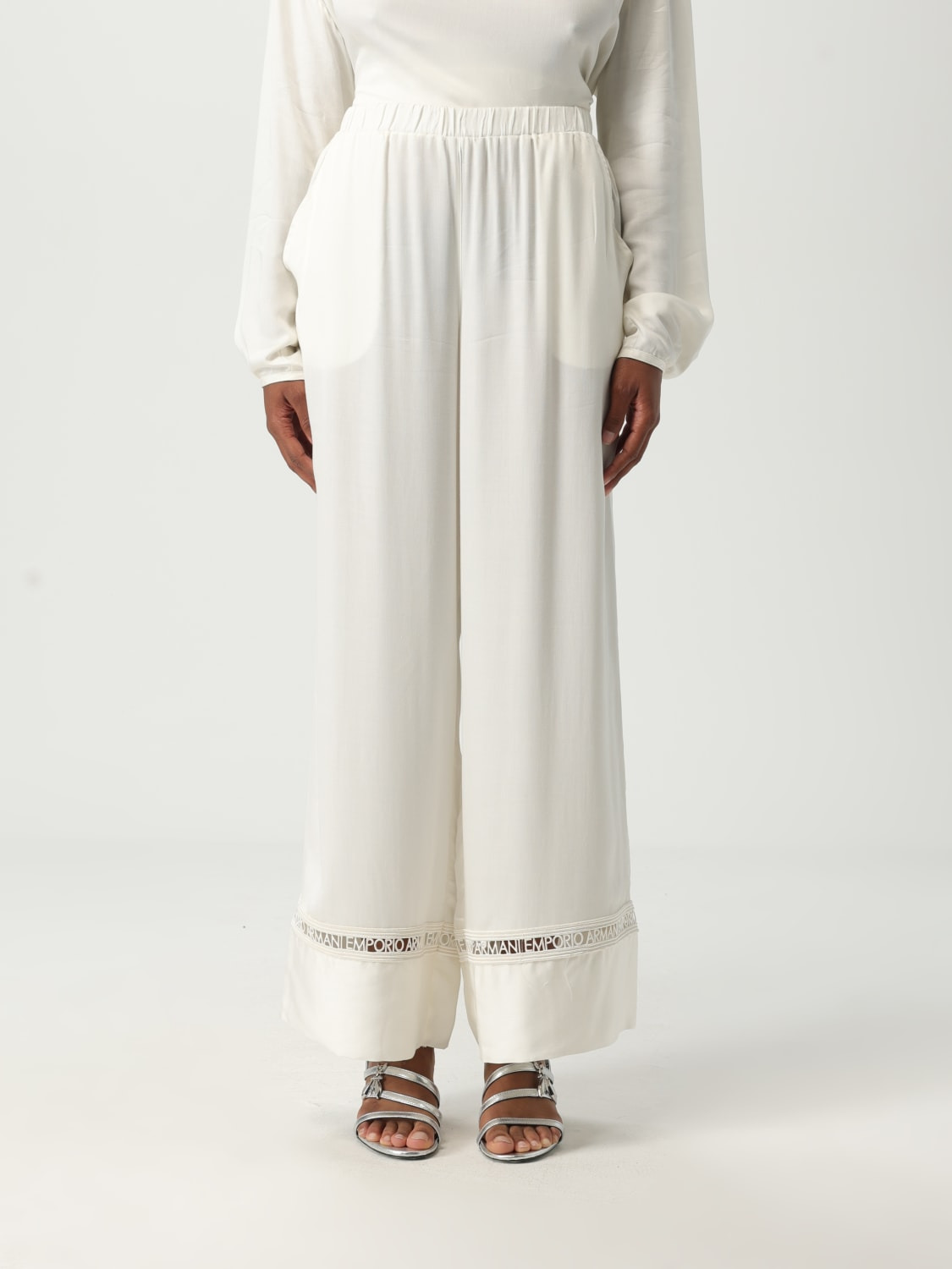 DESCRIPTION - Style: Basic, Classic - Waist: High waist - Bottom: With straight hemline - Materials: Cotton - Pattern: Plain-colored DETAILS AND CARE Composition Natural (Veg)->Cotton100 % SIZE AND FIT Sizes not available Size and fit Narrow leg, Regular fit Designer code: EW000790AF12188 U1131 Giglio Code: G91492 Designer: Emporio Armani Collection: Emporio Armani Woman Category: Clothing Emporio Armani