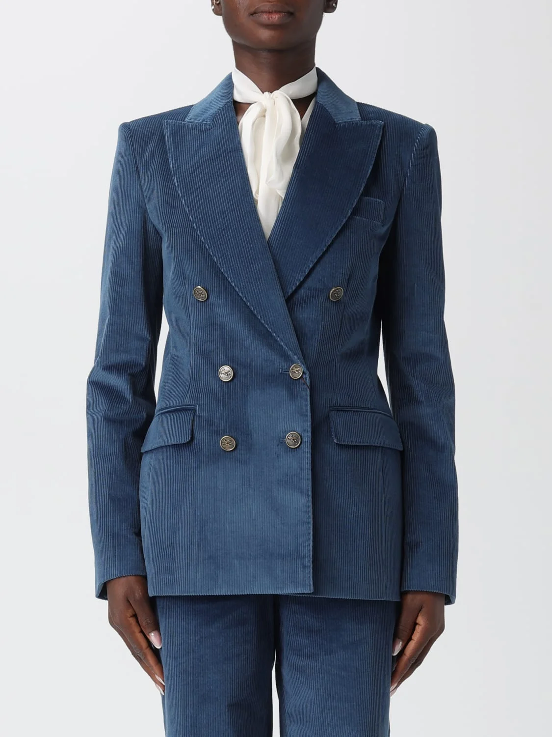 DESCRIPTION - Style: Classic - Model: Double-breasted, Ribbed - Neck: Peak lapels - Shoulders: Padded, Regular - Sleeves: Long - Closure: With buttons - Bottom: With back slit, With straight hemline - Pockets: With flap - Length: Short jackets - Materials: Velvet - Pattern: Plain-colored DETAILS AND CARE Composition Synthetic->Elastane3.0 % Synthetic->Elastane2 SIZE AND FIT Sizes not available Size and fit Regular fit Designer code: WRCA001099TUEM4 B0786 Giglio Code: H25377 Designer: Etro Collection: Etro Woman Category: Clothing Etro
