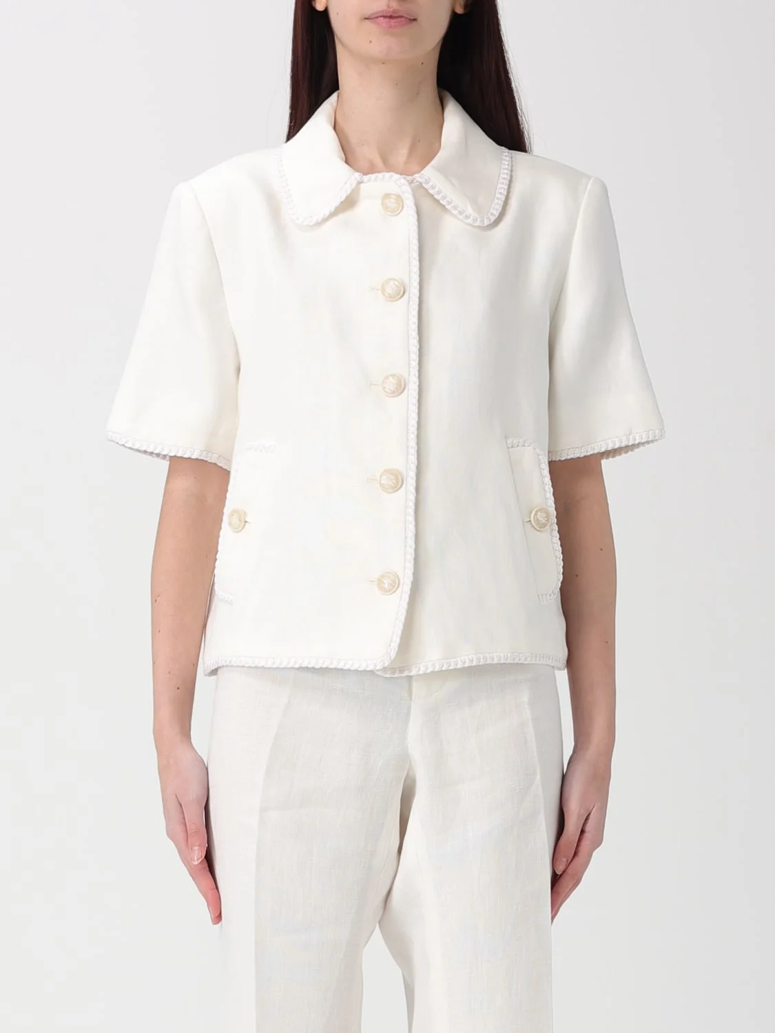 SHORT-SLEEVED CROPPED LINEN JACKET WITH PEGASO BUTTONS