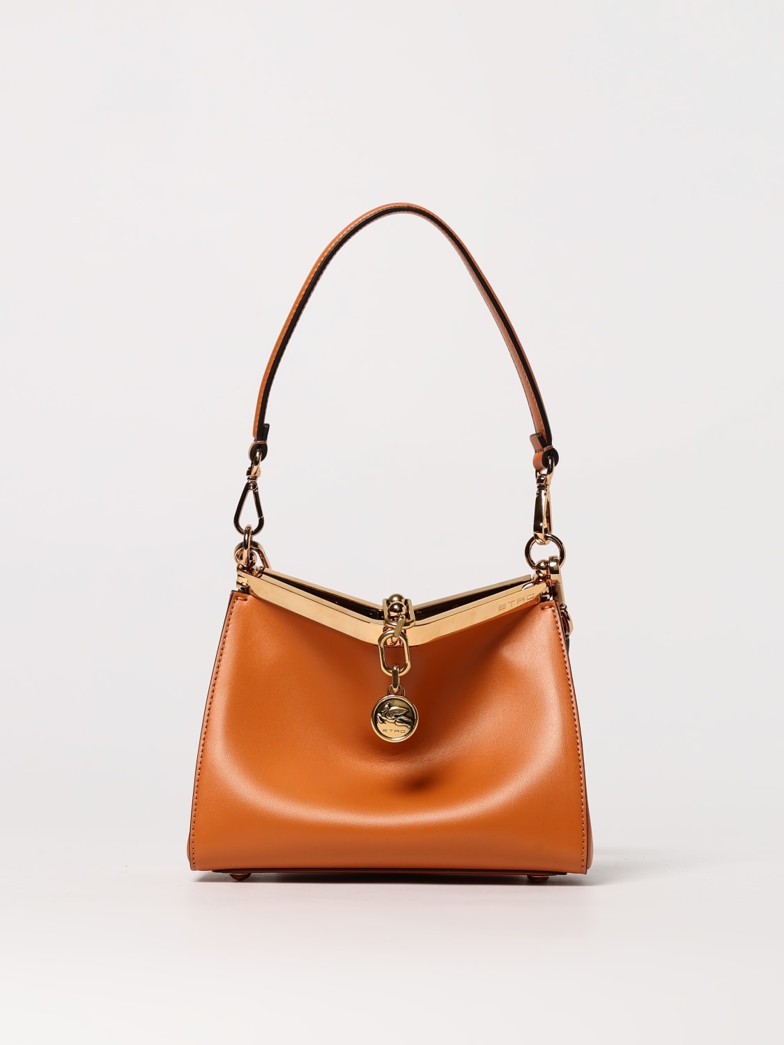 DESCRIPTION Editorial Notes Shoulder bag woman Etro - Logo: Engraved - Lining: Leather, With logo - Model: Shoulder - Closure: With interlocking hook - Bottom: With protective feet at the bottom, Metal - Shape: Flared - Handle: Removable - Shoulder strap: Adjustable and removable - Materials: Smooth calfskin - Pattern: Plain-colored DETAILS AND CARE Composition Vitello SIZE AND FIT Sizes Width : 21 cm Height: 16 cm Depth: 9 cm Designer code: WP1B0001AU022 A8802 Giglio Code: 423722 Designer: Etro Collection: Etro Woman Category: Bags Etro