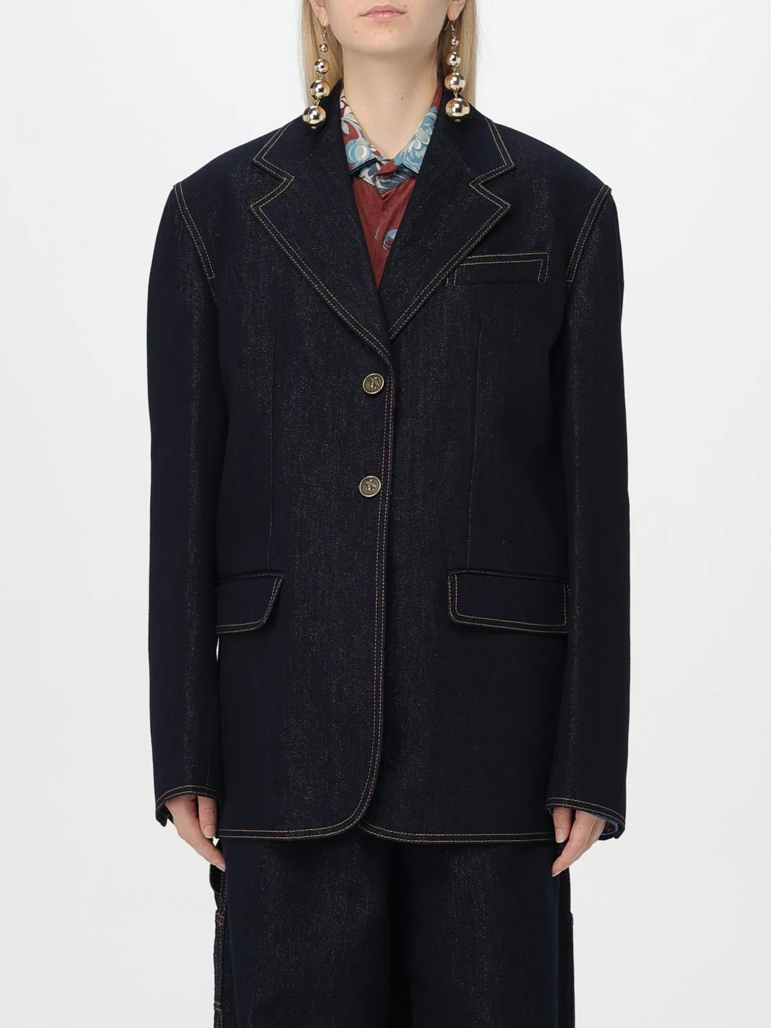 DESCRIPTION - Shoulders: Relaxed - Sleeves: Long - Closure: With buttons - Bottom: With straight hemline - Neck: Lapel - Pockets: With flap - Materials: Denim - Pattern: Plain-colored DETAILS AND CARE Composition 70% co, 20% vi, 10% cf SIZE AND FIT Sizes not available Size and fit Relaxed fit Designer code: WRNA0012AD177 S9000 Giglio Code: F95772 Designer: Etro Collection: Etro Woman Category: Clothing Etro