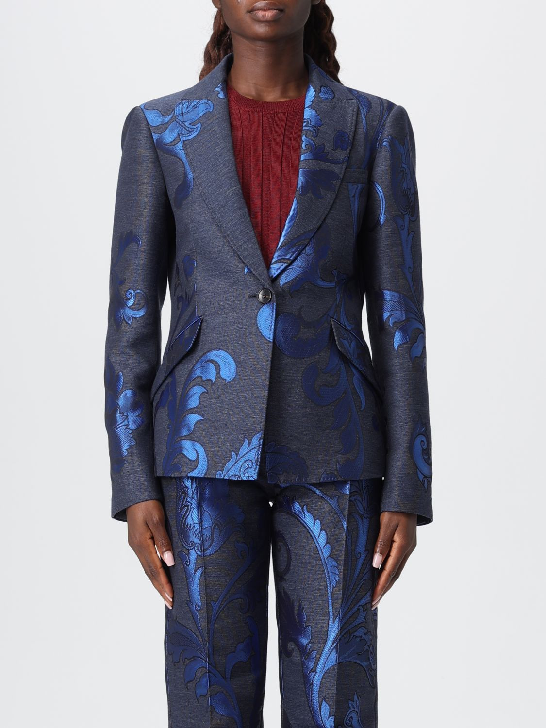 DESCRIPTION - Style: Elegant - Model: Single-breasted - Shoulders: Regular - Sleeves: Long - Bottom: With straight hemline - Neck: Lapel - Pockets: With flap - Closure: 1-button - Length: Short jackets - Materials: Cotton blend - Pattern: Paisley DETAILS AND CARE Composition | 50%Poliestere28%Cotone22%Viscosa SIZE AND FIT Sizes not available Size and fit Regular fit Designer code: WRNA001599TJED4 S9885 Giglio Code: H36220 Designer: Etro Collection: Etro Woman Category: Clothing Etro