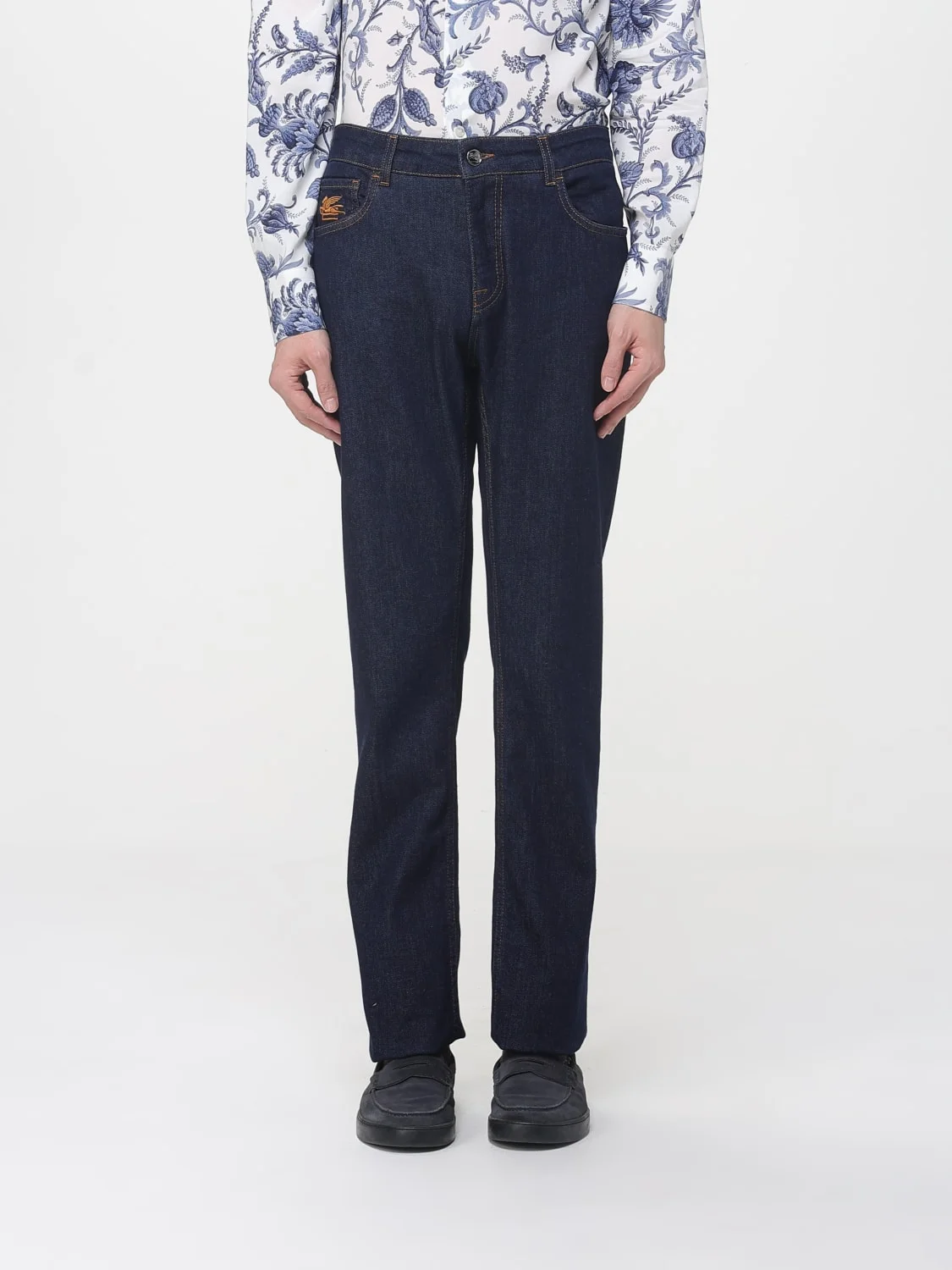 DESCRIPTION - Style: Classic - Pockets: 5-pocket - Waist: Medium, With loops - Bottom: With straight hemline - Closure: With button and zip - Materials: Cotton denim - Pattern: Plain-colored DETAILS AND CARE Composition 99% Cotone 1% Elastan SIZE AND FIT Sizes not available Size and fit Regular fit Designer code: MRNB0004AD333 S9091 Giglio Code: 439901 Designer: Etro Collection: Etro Men Category: Clothing Etro