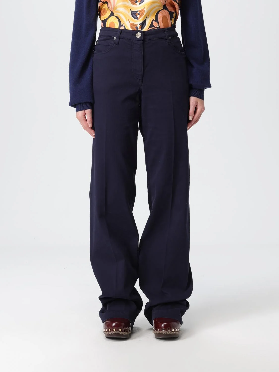 DESCRIPTION - Style: Casual - Pockets: 5-pocket - Waist: High waist - Bottom: With straight hemline - Closure: With button and zip - Materials: Stretch denim - Pattern: Plain-colored DETAILS AND CARE Composition 98% Cotone 2% Elastan SIZE AND FIT Sizes not available Size and fit Regular fit Designer code: WRNB0026AV689 B0387 Giglio Code: 433460 Designer: Etro Collection: Etro Woman Category: Clothing Etro