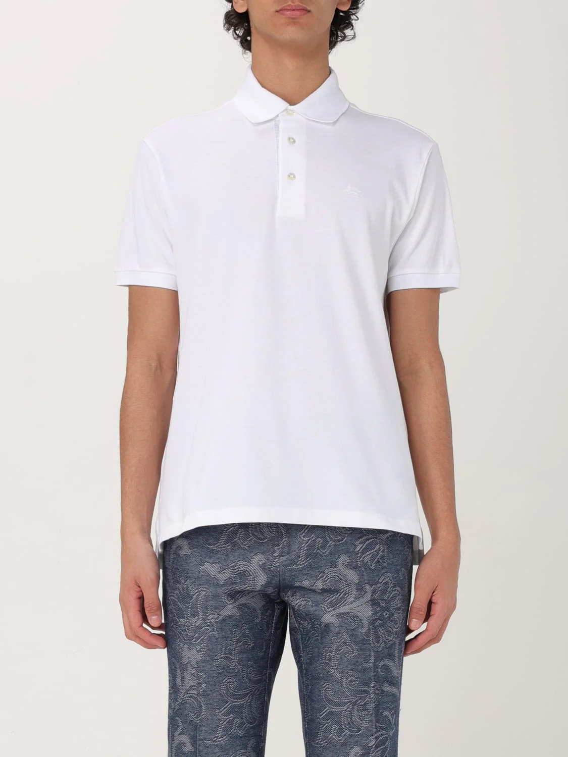 DESCRIPTION - Style: Basic - Shoulders: Regular - Sleeves: Short - Closure: With 3-button placket - Bottom: With straight hemline - Logo: Etro Pegaso - Neck: Ribbed - Materials: Cotton - Pattern: Plain-colored DETAILS AND CARE Composition 100% Cotone Wash and Care Machine wash SIZE AND FIT Sizes not available Size and fit Regular fit Designer code: MRMD0005AC274 W0800 Giglio Code: 423648 Designer: Etro Collection: Etro Men Category: Clothing Etro