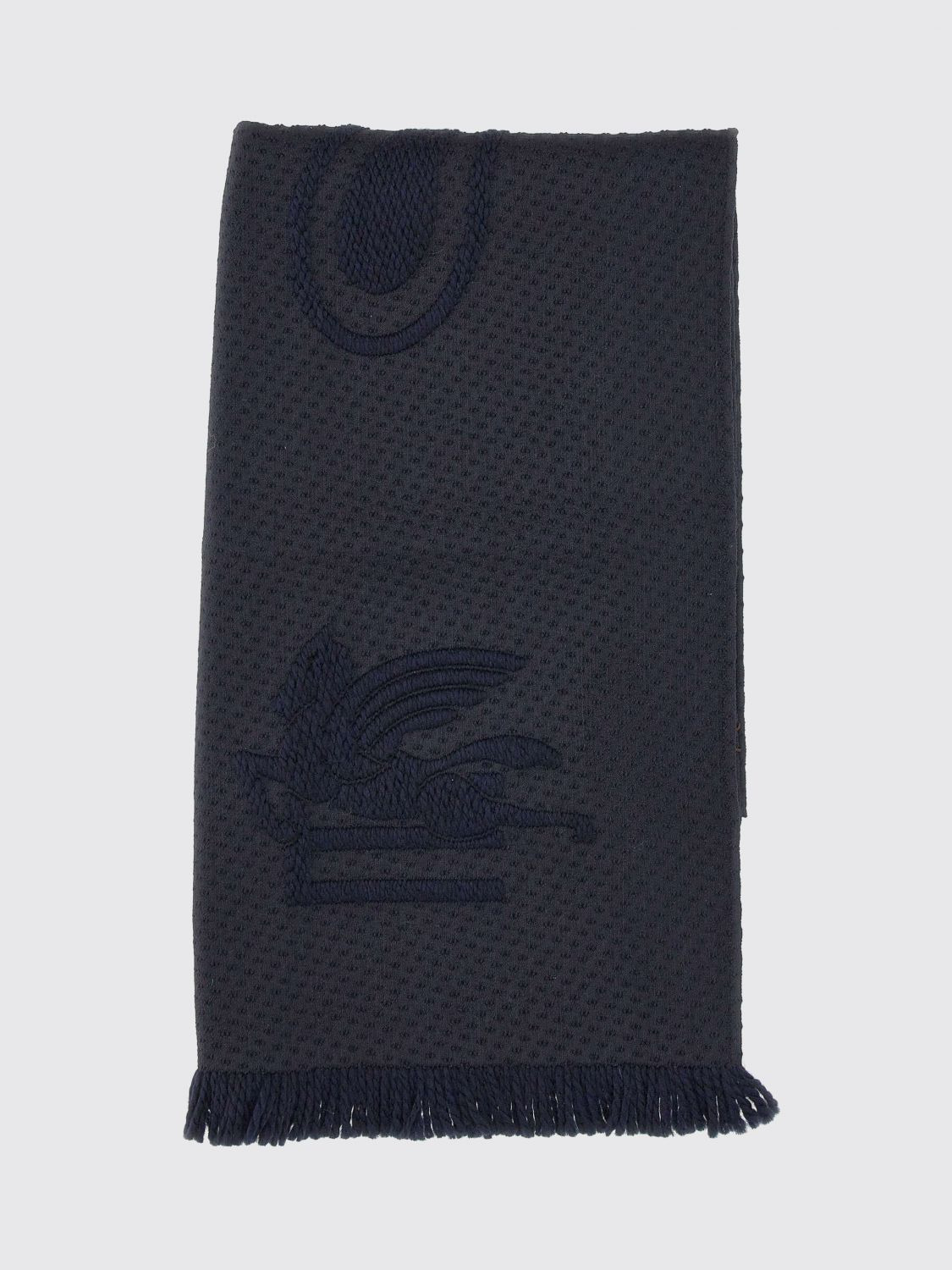 DESCRIPTION - Logo: Inlaid - Bottom: Fringed - Shape: Rectangular - Materials: Silk, Wool - Pattern: Plain-colored DETAILS AND CARE Composition 96% Wool, 3% Silk, 1% Elastane; SIZE AND FIT Sizes not available Designer code: WATA0037AV759 B0065 Giglio Code: H24485 Designer: Etro Collection: Etro Woman Category: Accessories Etro