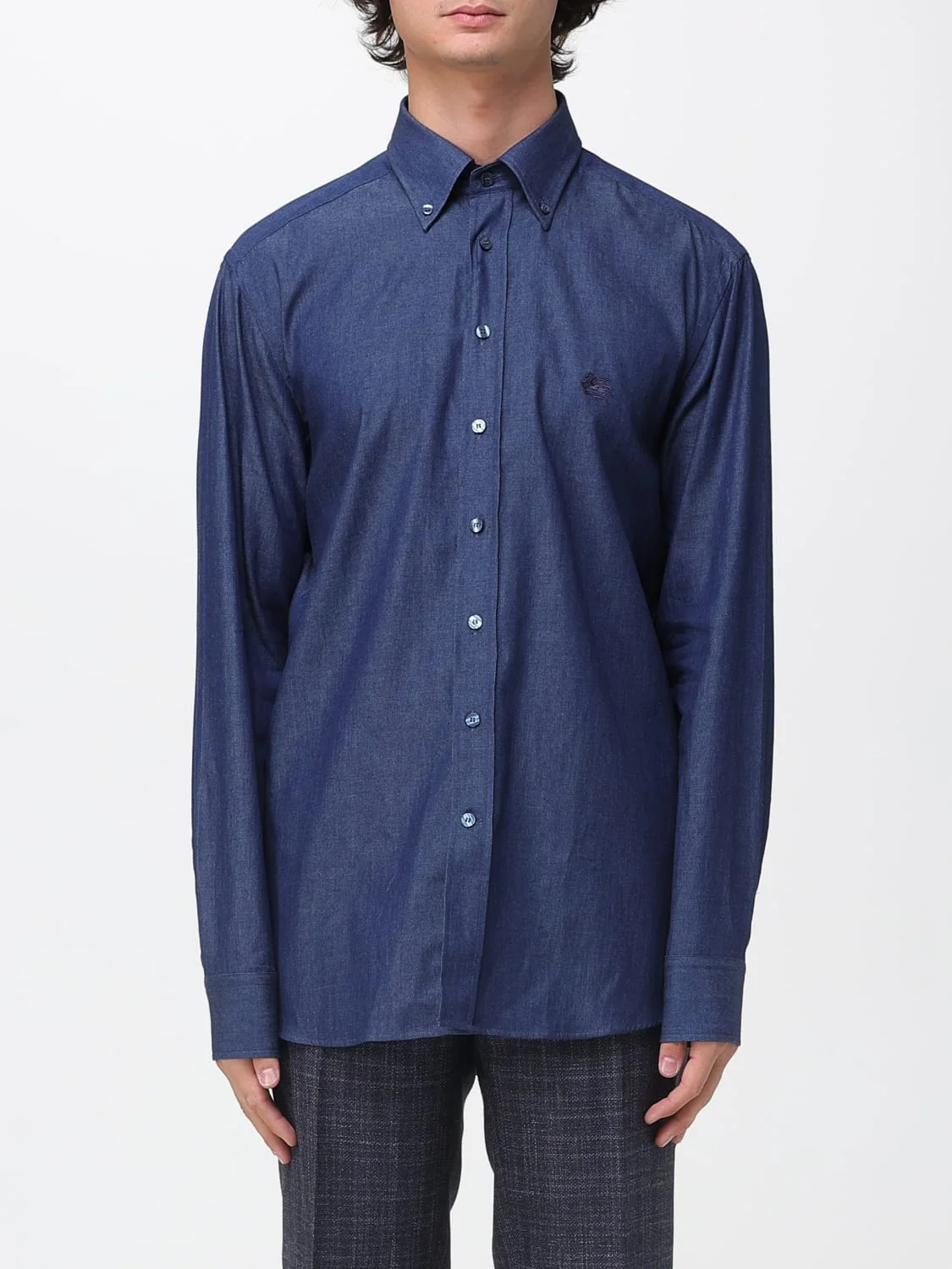 DESCRIPTION - Style: Basic, Casual - Logo: Contrasting, Embroidered, Etro Cube - Neck: Button-down - Shoulders: Regular - Closure: With buttons - Bottom: With curved hemline - Sleeves: Long sleeve shirts - Materials: Cotton - Pattern: Logo, Plain-colored DETAILS AND CARE Composition 100 AF SIZE AND FIT Sizes not available Size and fit Regular fit Designer code: MRIB000499SA5L9 X0880 Giglio Code: 430138 Designer: Etro Collection: Etro Men Category: Clothing Etro