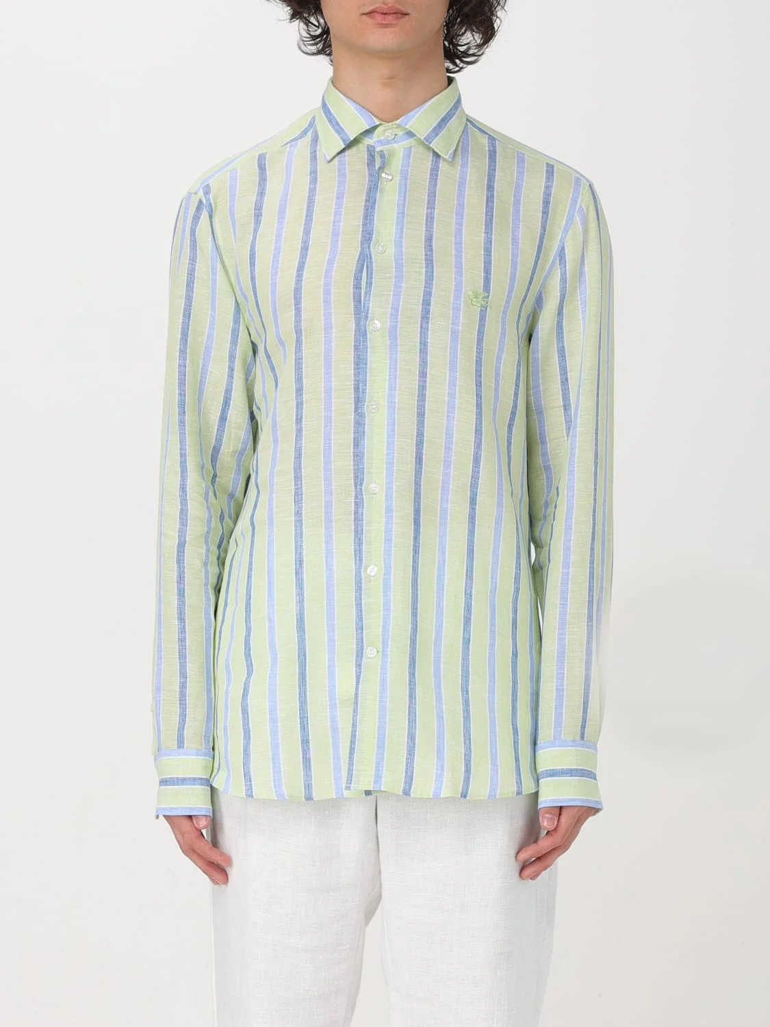 DESCRIPTION - Style: Classic - Logo: Embroidered - Neck: French - Shoulders: Regular - Cuffs: 2-button - Closure: With buttons - Bottom: With curved hemline - Occasion: Morning - Sleeves: Long sleeve shirts - Materials: Linen - Pattern: Stripes DETAILS AND CARE Composition 100% Cotone SIZE AND FIT Sizes not available Size and fit Regular fit Designer code: MRIB000299TR314 S8454 Giglio Code: 400185 Designer: Etro Collection: Etro Men Category: Clothing Etro