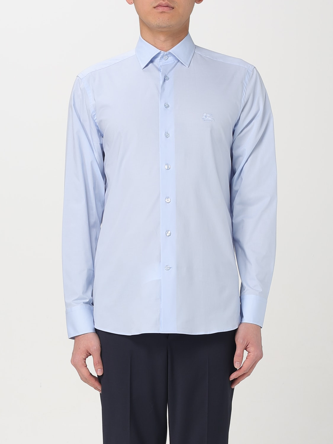 DESCRIPTION - Style: Classic - Logo: Etro Pegaso - Neck: French - Shoulders: Regular - Closure: With buttons - Bottom: With straight hemline - Sleeves: Long sleeve shirts - Materials: Cotton poplin - Pattern: Plain-colored DETAILS AND CARE Composition COTTON SIZE AND FIT Sizes not available Size and fit Slim fit Designer code: MRIB0002AV607 B3033 Giglio Code: G48429 Designer: Etro Collection: Etro Men Category: Clothing Etro