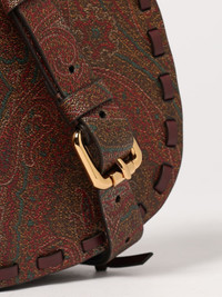 DESCRIPTION - Style: Classic, Ethnic - Logo: With logo, Etro Pegaso - Details: With woven bands - Model: Shoulder - Closure: With flap and magnetic buttons - Shape: Round, Flared - Shoulder strap: Adjustable and removable - Materials: Smooth calfskin, Matt-grained coated cotton - Pattern: Paisley, All-over logo DETAILS AND CARE Composition 76% Cotone 24% Poliestere Spalmatura 100 SIZE AND FIT Sizes Width : 21 cm Height: 18 cm Depth: 7 cm Designer code: WP1C0014AE246 R2723 Giglio Code: 423855 Designer: Etro Collection: Etro Woman Category: Bags Etro