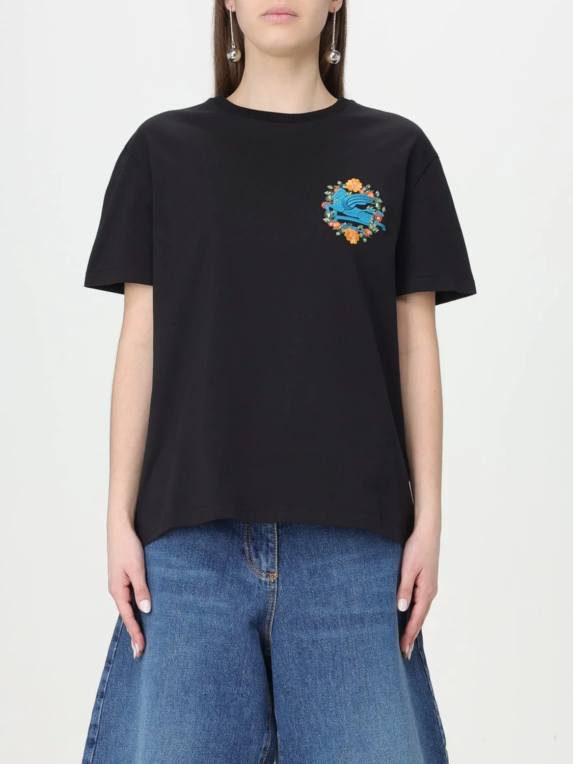 DESCRIPTION - Style: Casual - Logo: Contrasting, Embroidered - Neckline: Crewneck - Shoulders: Regular - Sleeves: Short - Bottom: With straight hemline - Materials: Cotton DETAILS AND CARE Composition 100%cotton SIZE AND FIT Sizes not available Size and fit Relaxed fit Designer code: WRJB0006AC036 N0000 Giglio Code: F31134 Designer: Etro Collection: Etro Woman Category: Clothing Etro