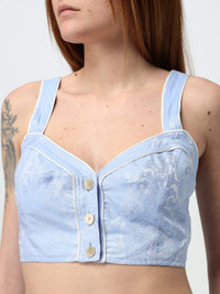 DESCRIPTION - Style: Romantic - Neckline: V neckline - Shoulders: With thin shoulder straps - Closure: With buttons - Bottom: With straight hemline - Model: Bustier - Sleeves: Off-the-shoulder tops - Materials: Cotton - Pattern: Paisley DETAILS AND CARE Composition not available SIZE AND FIT Sizes not available Size and fit Cropped fita Designer code: WRJA010199TJ562 B1581 Giglio Code: G45142 Designer: Etro Collection: Etro Woman Category: Clothing Etro