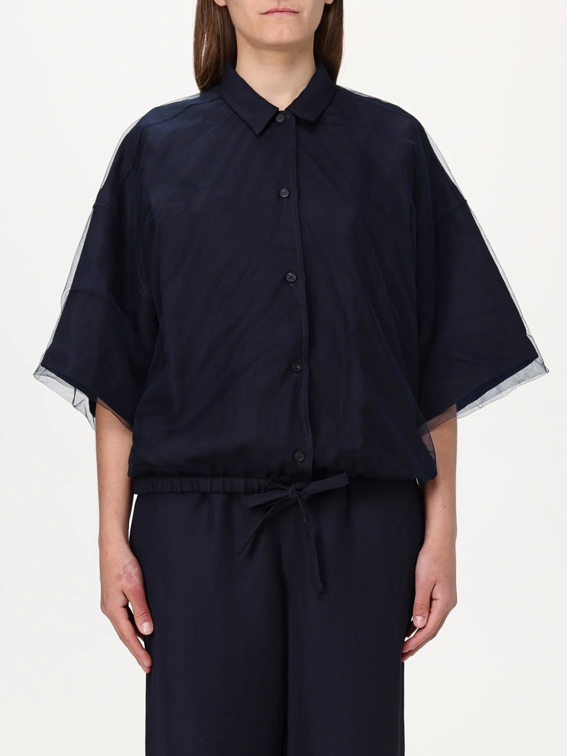 DESCRIPTION - Style: Basic - Neck: Classic - Shoulders: Relaxed - Closure: With buttons - Bottom: With drawstrings, With straight hemline - Sleeves: Short sleeve shirts - Materials: Viscose - Pattern: Plain-colored DETAILS AND CARE Composition coto SIZE AND FIT Sizes not available Size and fit Relaxed fit Designer code: GCD275F689L354 5146 Giglio Code: G48537 Designer: Fabiana Filippi Collection: Fabiana Filippi Woman Category: Clothing Fabiana Filippi