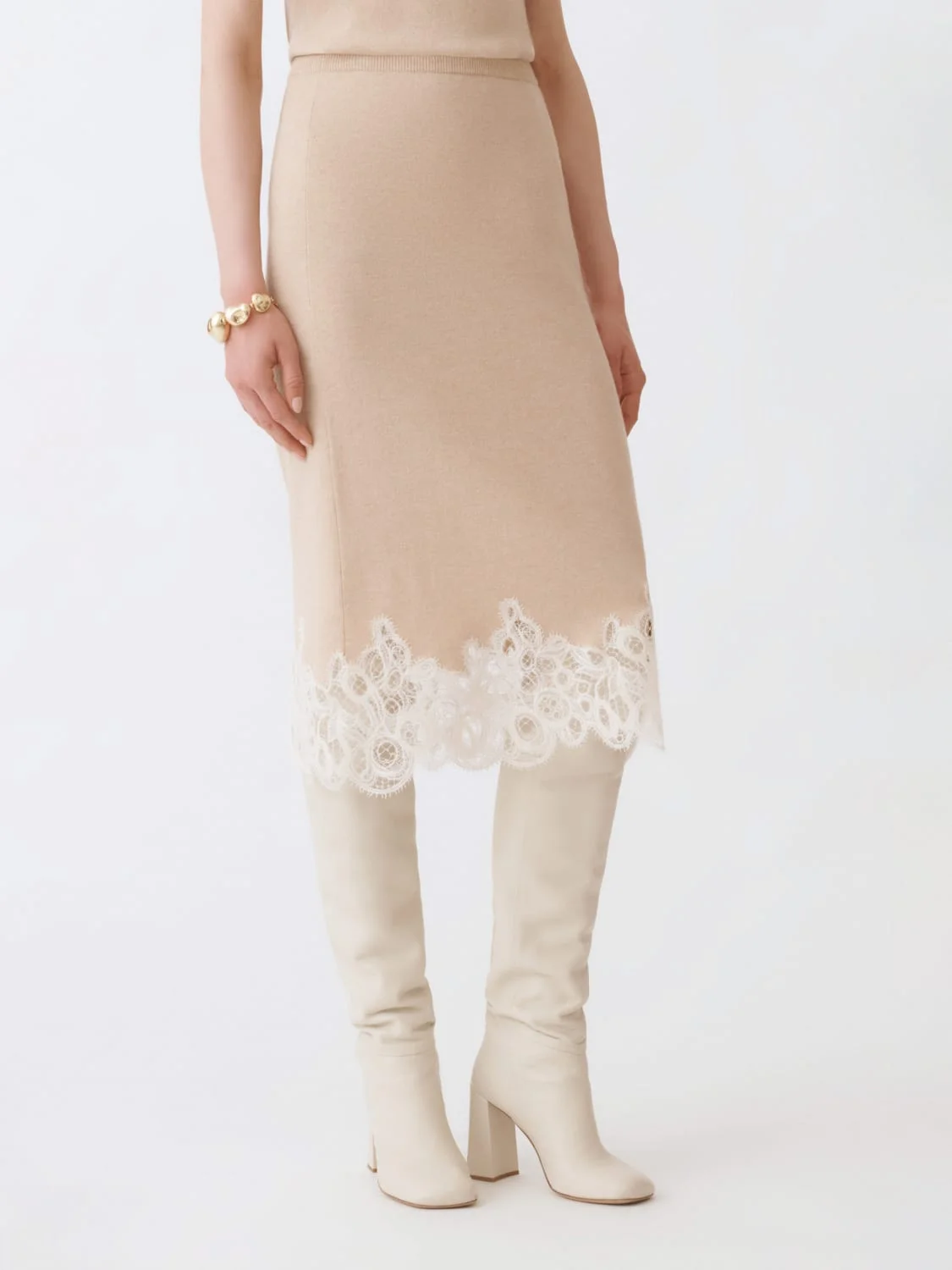 Platinum skirt with macramé lace