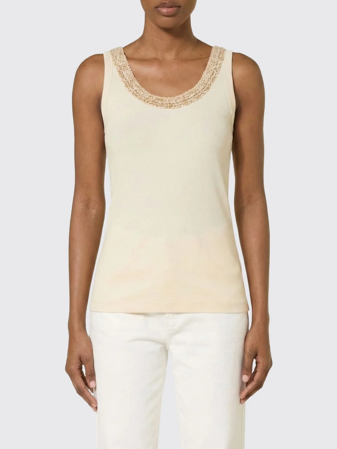 DESCRIPTION - Style: Glamour - Details: With beads - Bottom: With straight hemline - Neckline: Round - Model: Stretch - Sleeves: Sleeveless tops - Materials: Cotton - Pattern: Embroidery, Plain-colored DETAILS AND CARE Composition 94% cotton, 6%elastane, 69%cotton, 21%polyami SIZE AND FIT Sizes not available Size and fit Slim fit Designer code: JED266F602L918 0145 Giglio Code: H87408 Designer: Fabiana Filippi Collection: Fabiana Filippi Woman Category: Clothing Fabiana Filippi