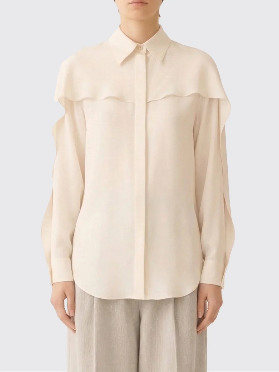 DESCRIPTION - Style: Classic, Elegant - Neck: French - Shoulders: Relaxed - Closure: Concealed buttons - Bottom: With curved hemline - Sleeves: Long sleeve shirts - Materials: Silk blend - Pattern: Plain-colored DETAILS AND CARE Composition 68% acetate, 32% silk SIZE AND FIT Sizes not available Size and fit Relaxed fit Designer code: CAD266F315D943 0145 Giglio Code: H95885 Designer: Fabiana Filippi Collection: Clothing Fabiana Filippi Category: Clothing > Shirt