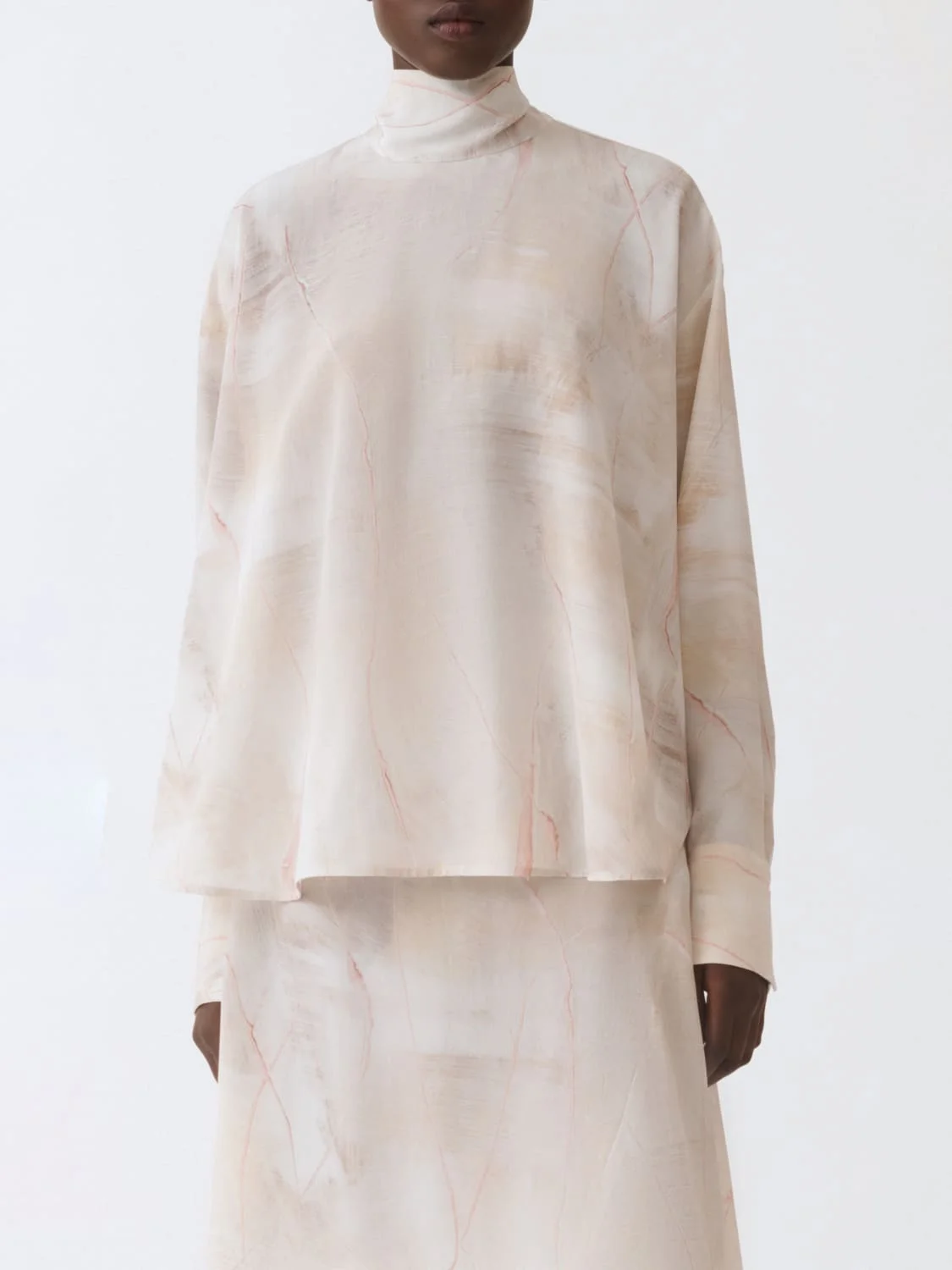 Printed crepe de chine top, butter