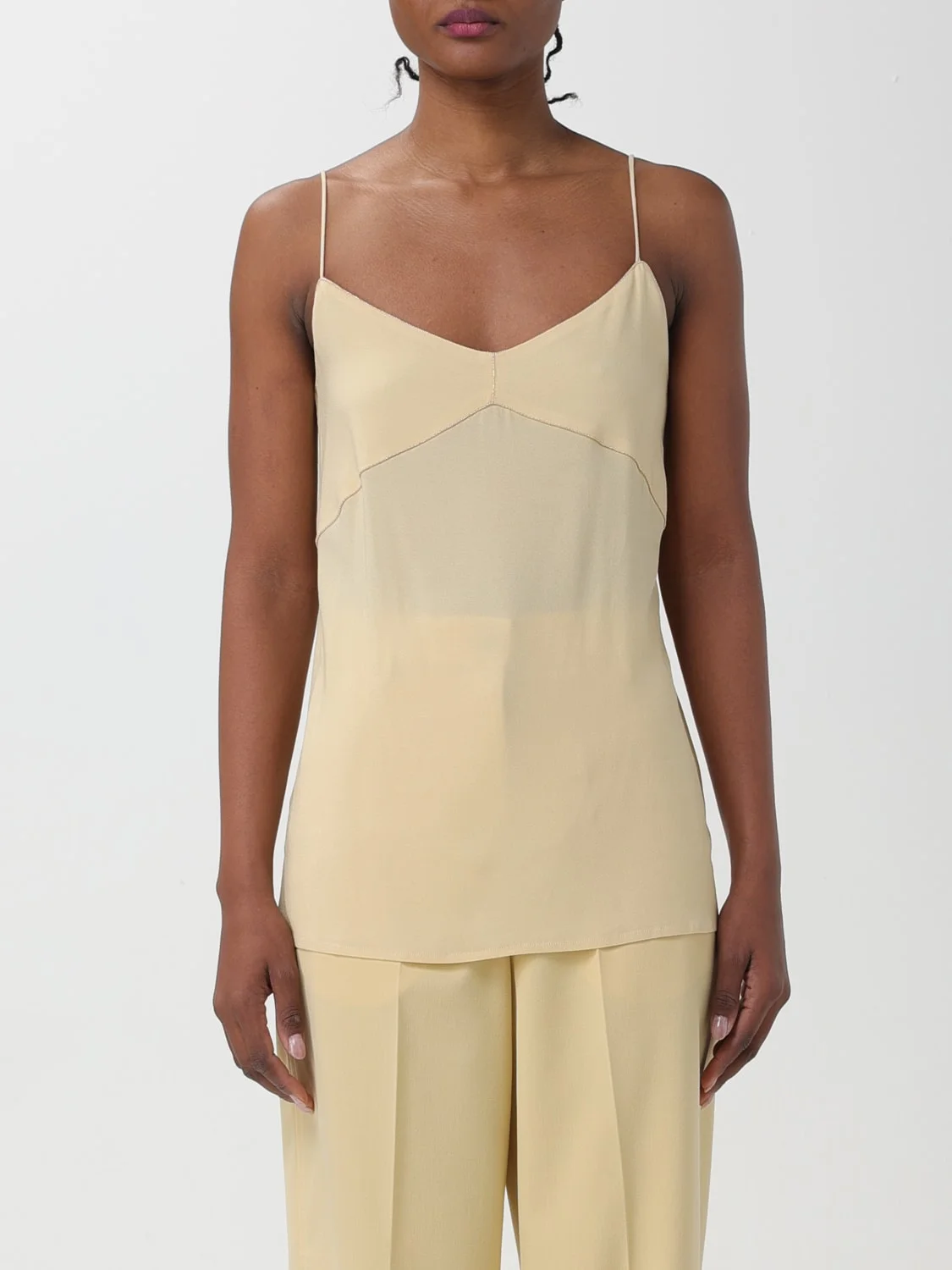 DESCRIPTION - Style: Classic - Neckline: V neckline - Shoulders: With thin shoulder straps - Bottom: With straight hemline - Sleeves: Off-the-shoulder tops - Materials: Stretch viscose - Pattern: Plain-colored DETAILS AND CARE Composition 96%VI 4%EA SIZE AND FIT Sizes not available Size and fit Regular fit Designer code: TPD264F214M466 769 Giglio Code: F28237 Designer: Fabiana Filippi Collection: Fabiana Filippi Woman Category: Clothing Fabiana Filippi
