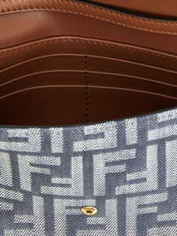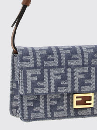 DESCRIPTION - Style: Sporty - Logo: FF monogram - Model: Shoulder - Closure: With button flap - Shape: Rectangular - Handle: Adjustable - Shoulder strap: Metal mesh - Materials: Cotton denim - Pattern: Monogram DETAILS AND CARE Composition 38% cotton 21% polyamide 21% polyurethane 20% SIZE AND FIT Sizes Width : 21 cm Height: 11 cm Depth: 5 cm Designer code: 8M0498AUT4 F1SXQ Giglio Code: H17257 Designer: Fendi Collection: Fendi Woman Category: Bags Fendi