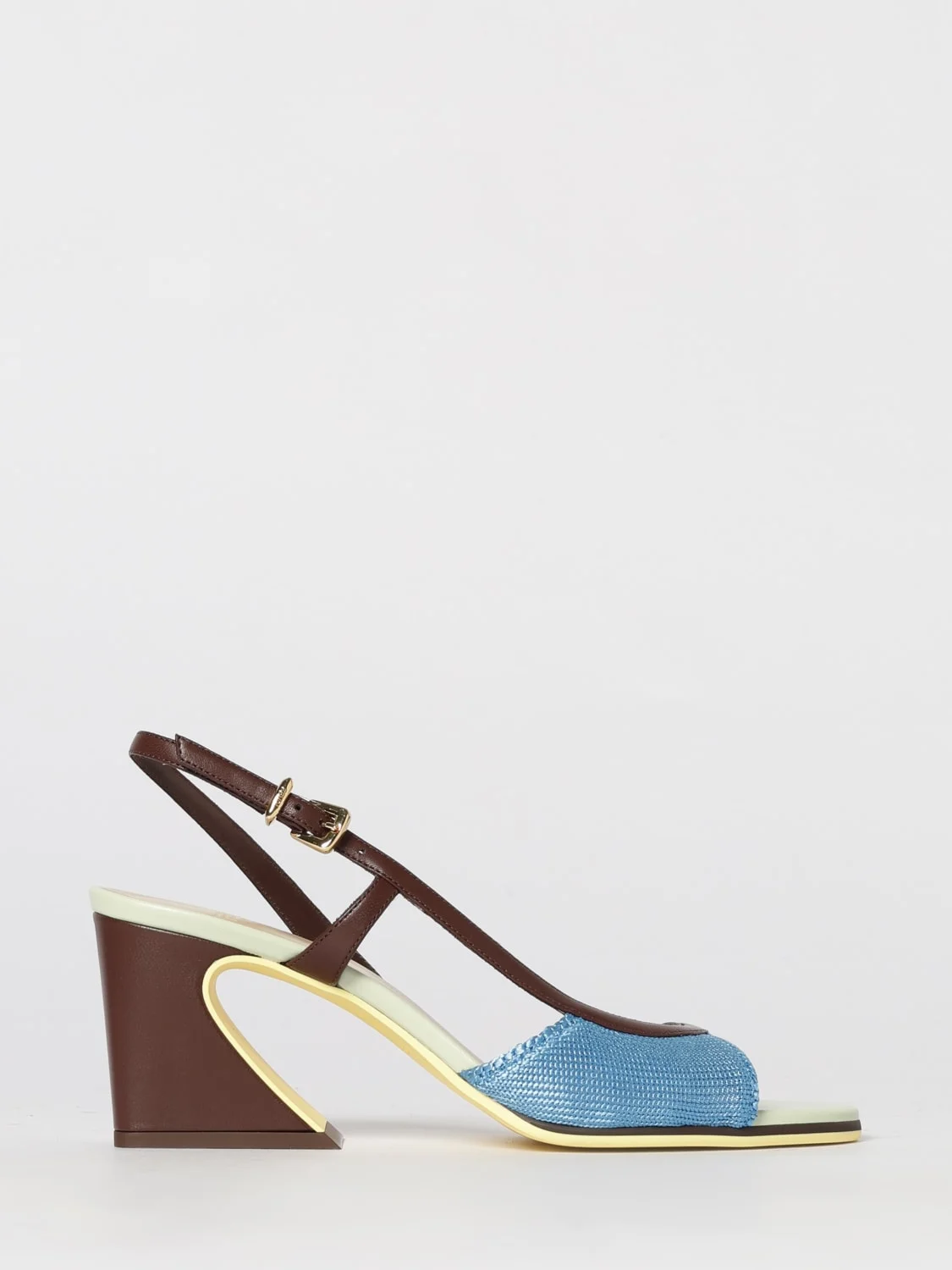 DESCRIPTION - Style: Casual, Chic - Lining: Leather, With logo - Model: Slingback - Toe: Open, Round - Sole: Leather - Occasion: Morning - Heel: Tacco medio scultoreo - Materials: Smooth calfskin - Pattern: Bicolor DETAILS AND CARE Composition 75%PL,23%PA,2%PU+Interno:100%PA SIZE AND FIT Sizes Heel: 6,5 cm Designer code: 8X8976AWKS F1VO7 Giglio Code: I19200 Designer: Fendi Collection: Shoes Fendi Category: Shoes > Heeled sandal