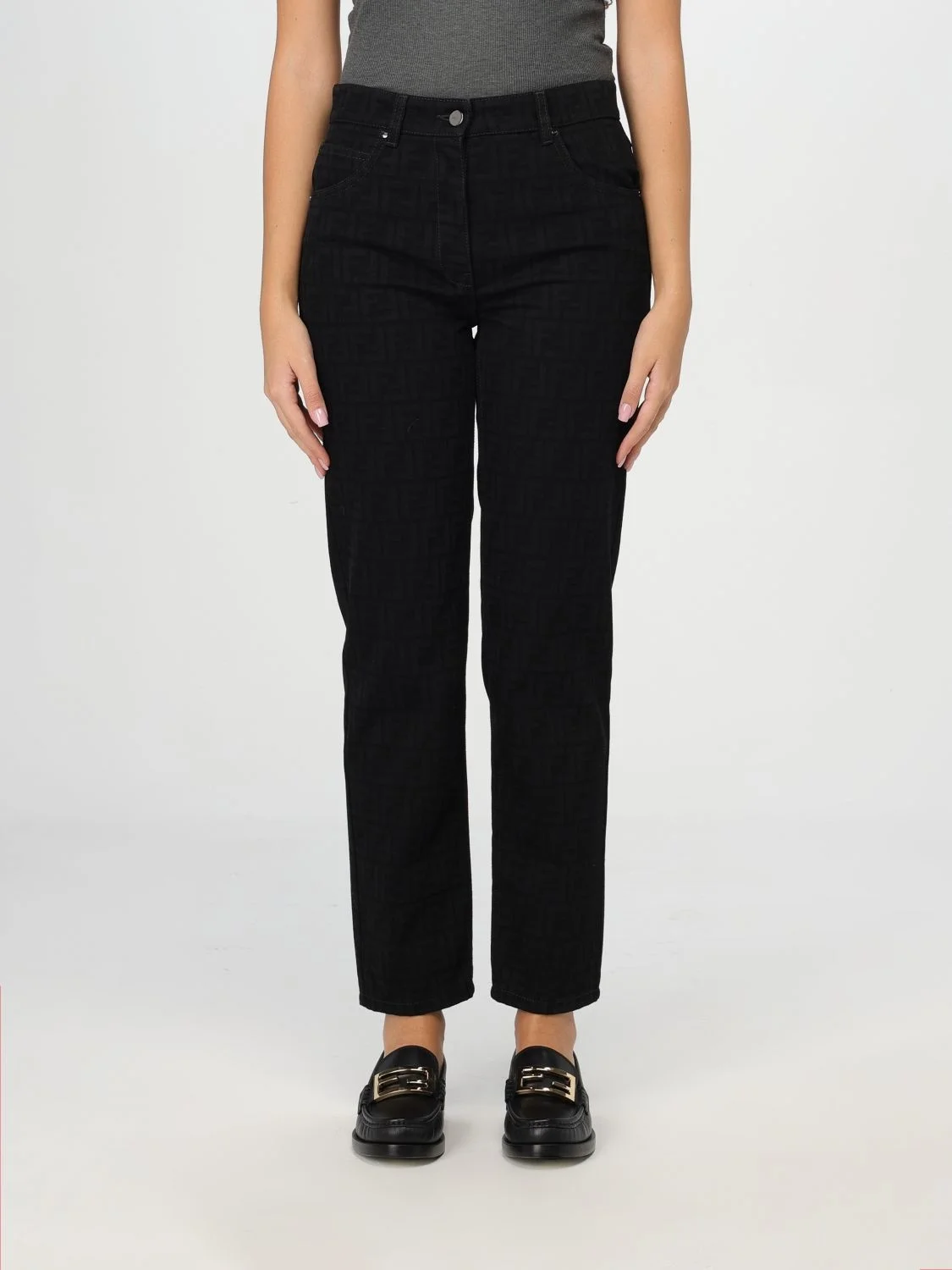 DESCRIPTION - Logo: FF monogram, Jacquard - Pockets: 5-pocket - Waist: With loops - Bottom: With straight hemline - Closure: With button and zip - Materials: Cotton denim - Pattern: Plain-colored DETAILS AND CARE Composition 100%CO+96%CO,4%EA SIZE AND FIT Sizes not available Size and fit Regular fit Designer code: FLP851AT1B F0GME Giglio Code: 415205 Designer: Fendi Collection: Fendi Woman Category: Clothing Fendi